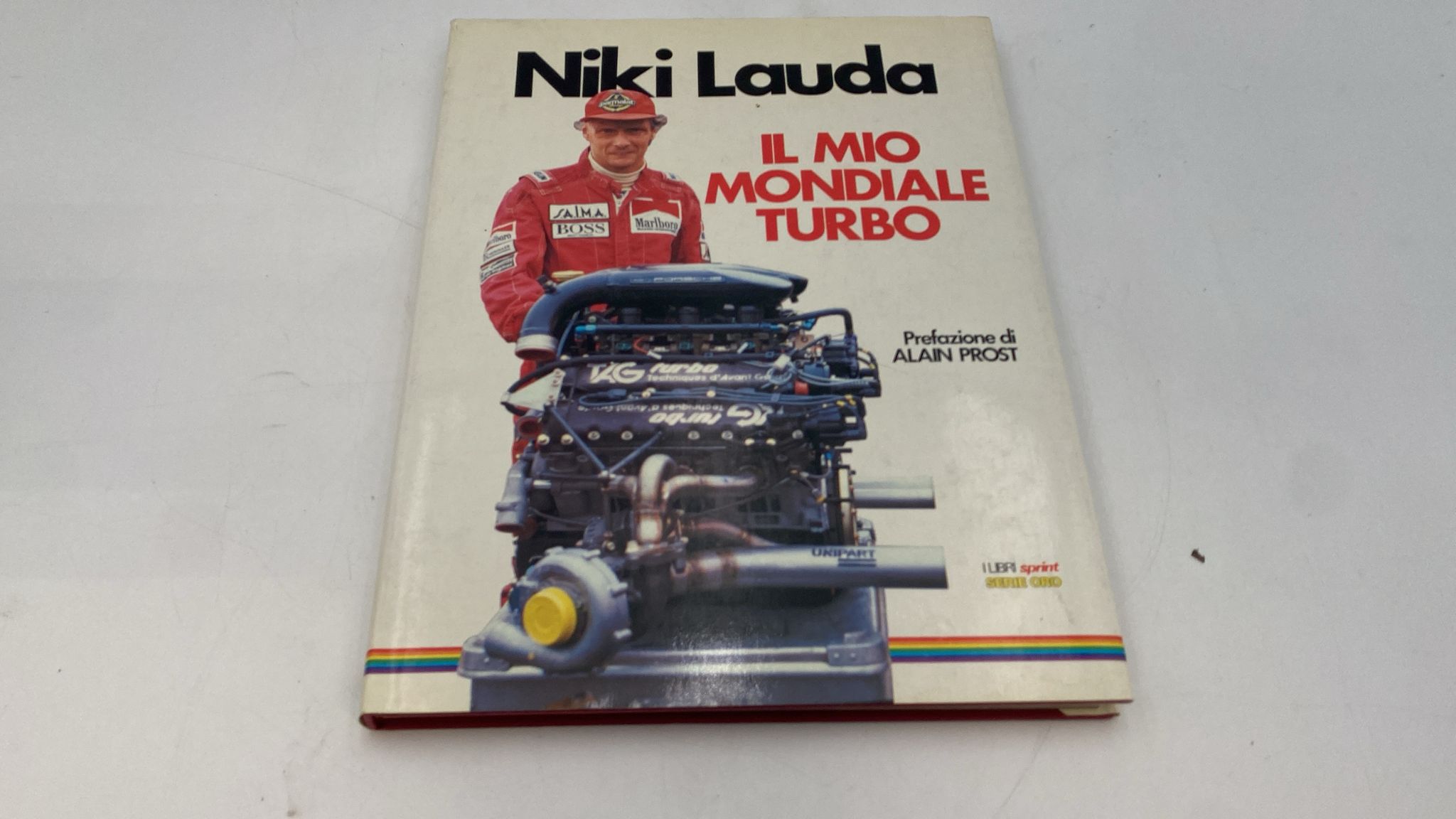 Libro su Niki Lauda con prefazione di Alain Prost. Copia con segni di ingiallimento nelle pagine date dal tempo.