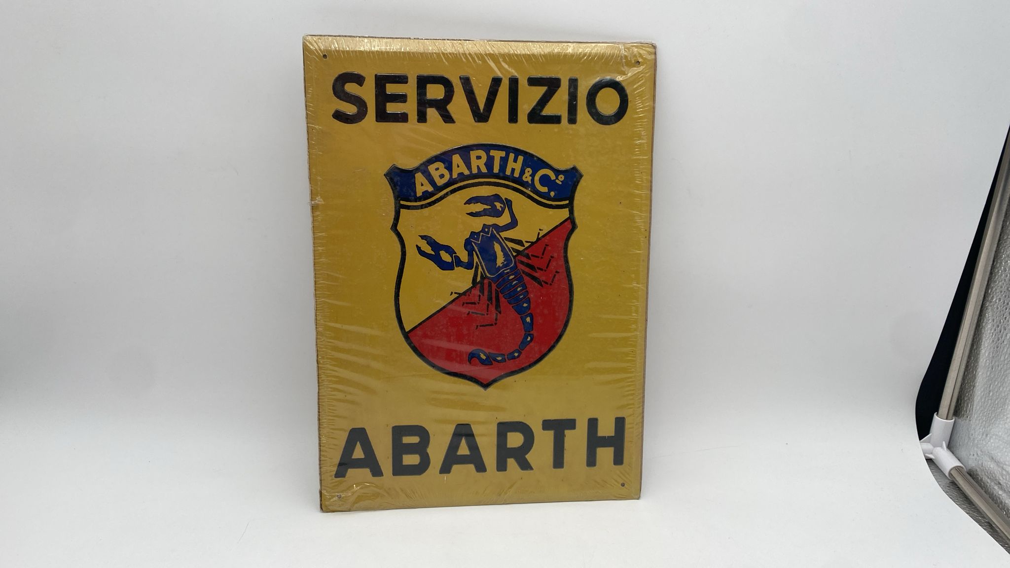 Insegna Servizio Abarth ancora sigillata. Dimensioni: 34,5 cm x 24,5 cm