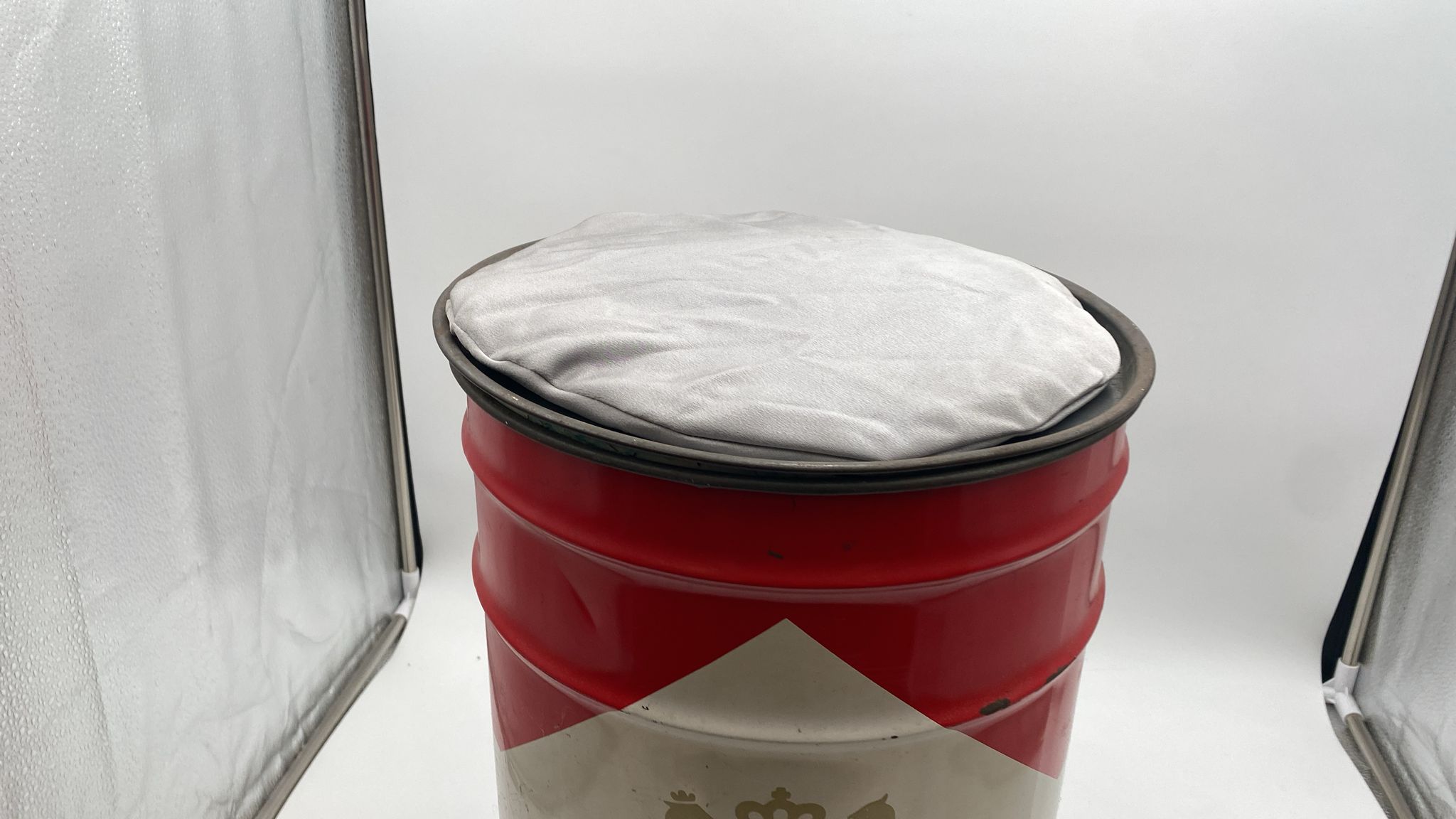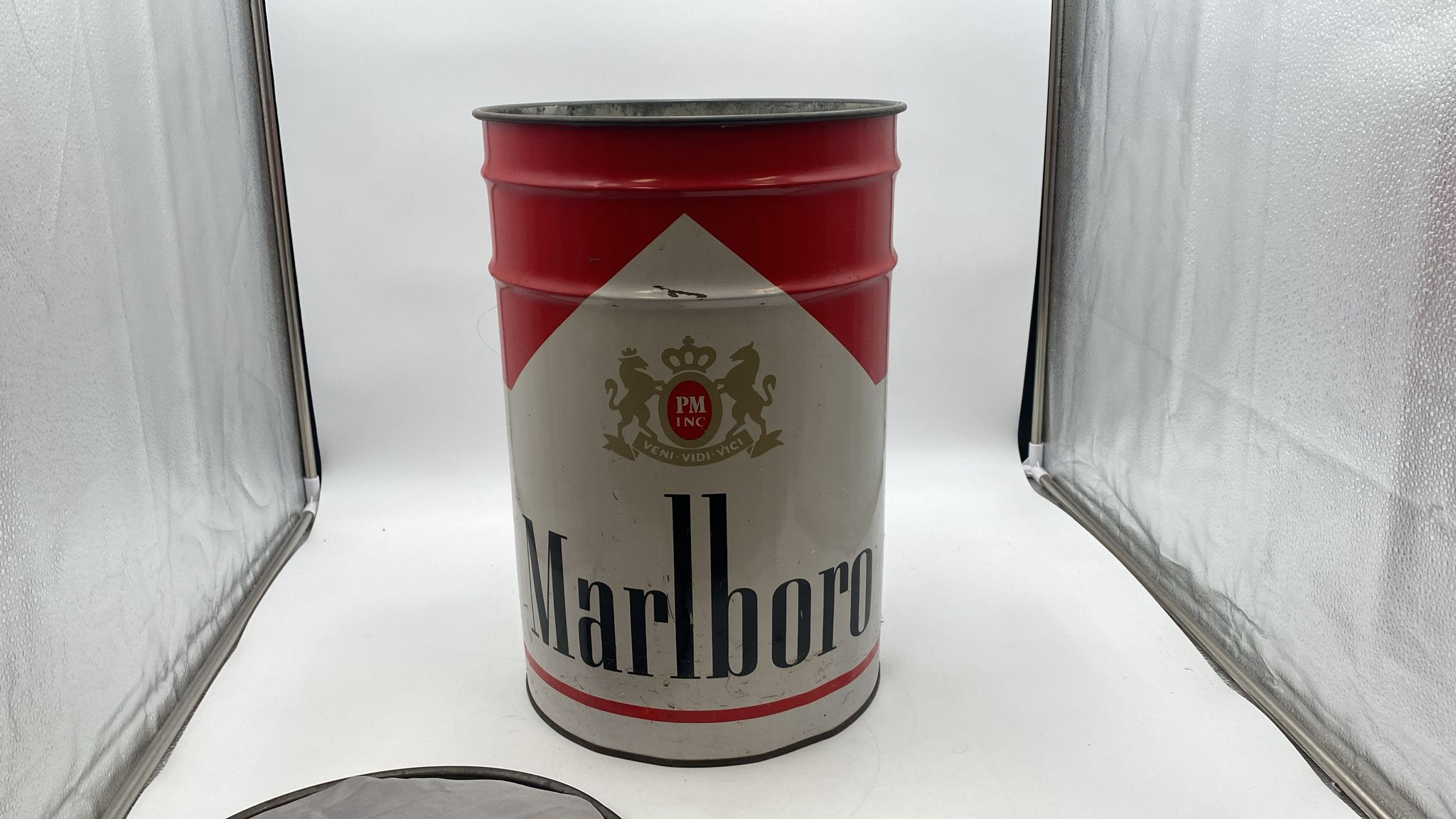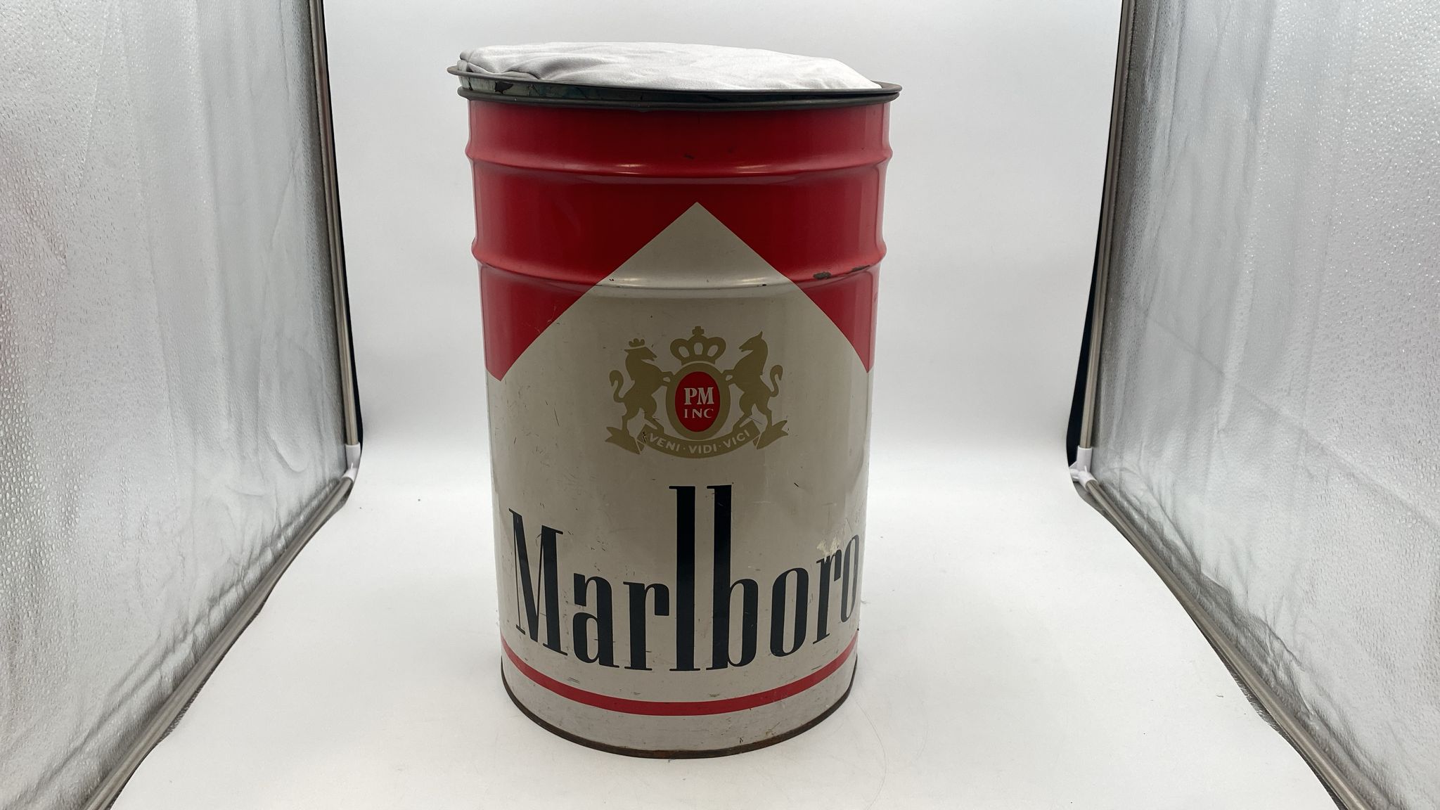 Bidone portaoggetti vintage della Marlboro completo di cuscino Diametro 30 cm, altezza 45 cm