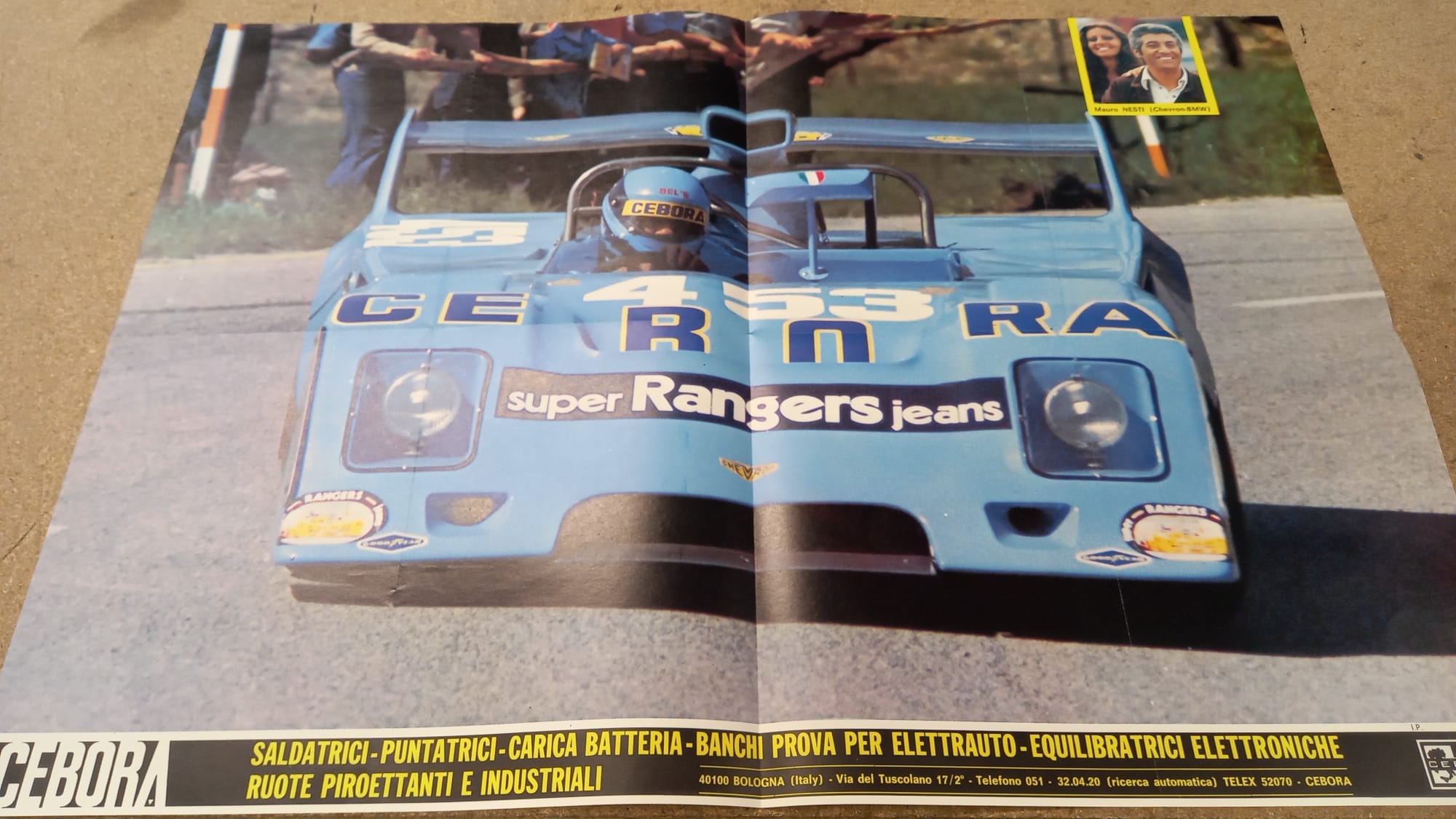 Poster raffigurante Mauro Nesti e la sua Chevron BMW In ottime condizioni Misure 68 x 48 cm