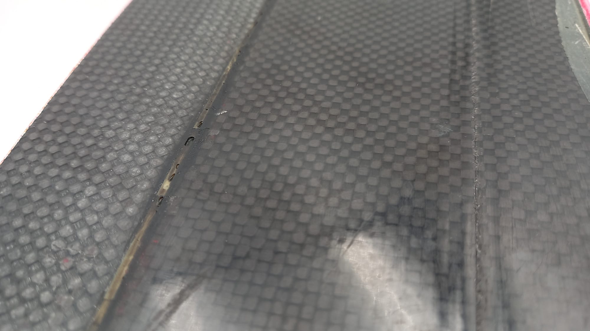 Realizzato in fibra di carbonio, visibile a vista nella parte inferiore