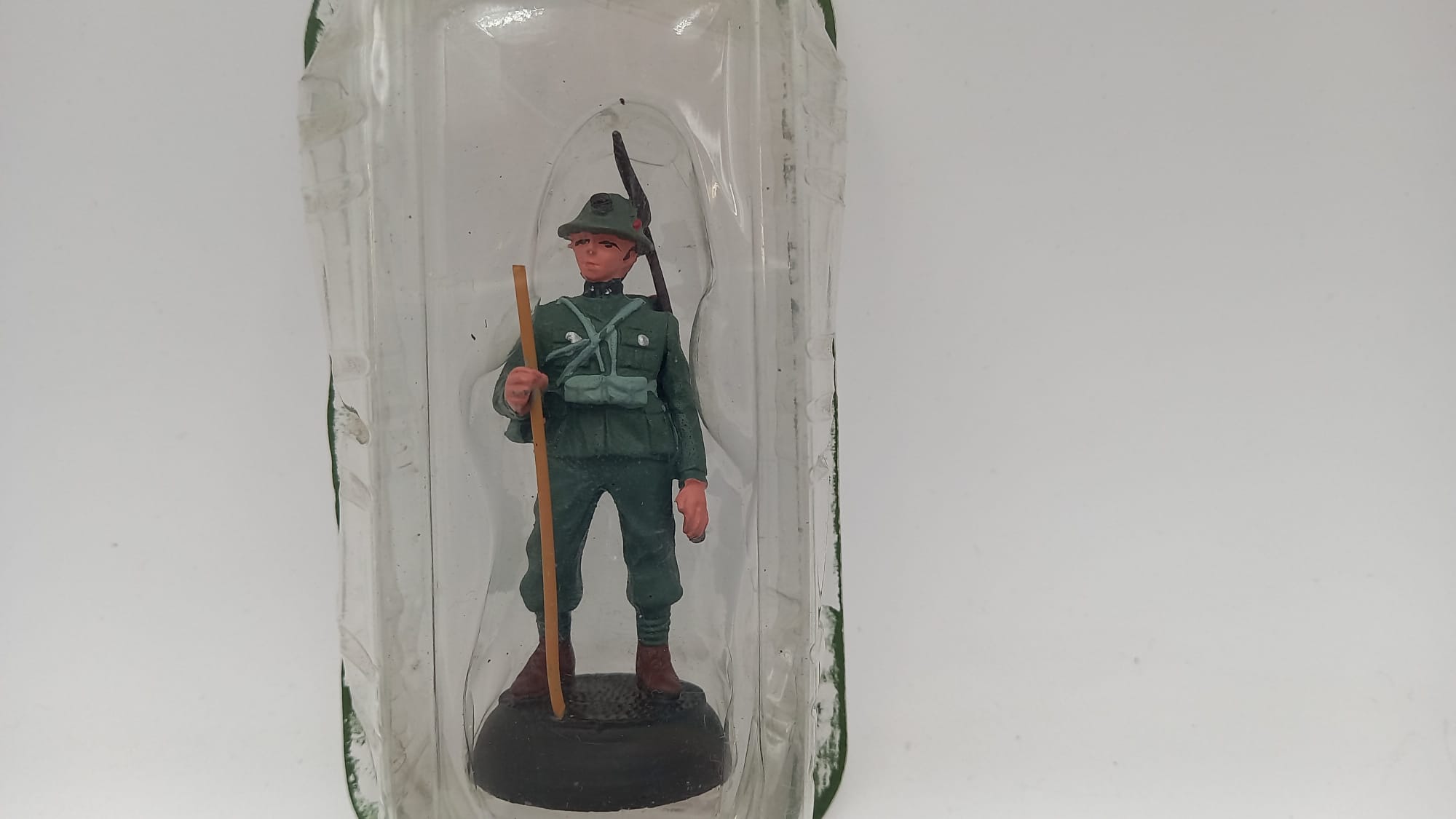 Figurino in piombo di un Alpino in tenuta di marcia 1915 Altezza soldato 7 cm Confezione usurata