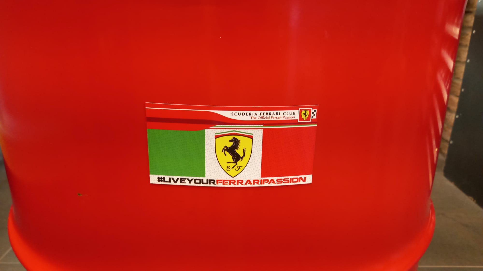 Barile senza sponsor ma con adesivo Scuderia Ferrari