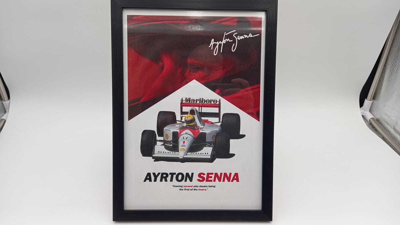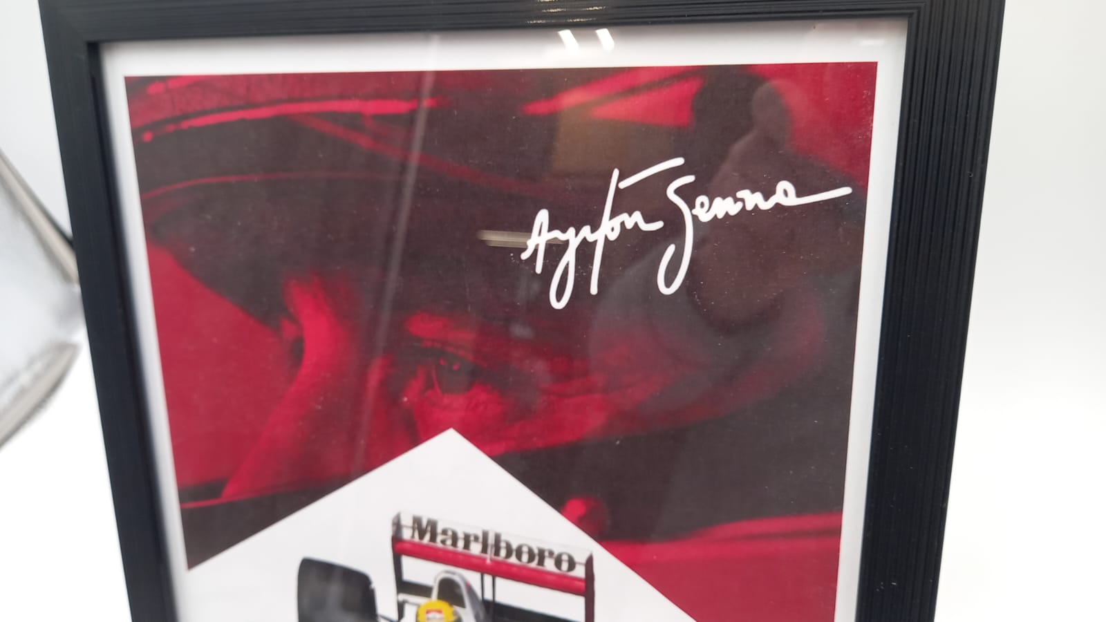 Quadro con stampa di Ayrton Senna alla guida della McLaren MP4/6 del 1991 In perfette condizioni, misure 23x32 cm