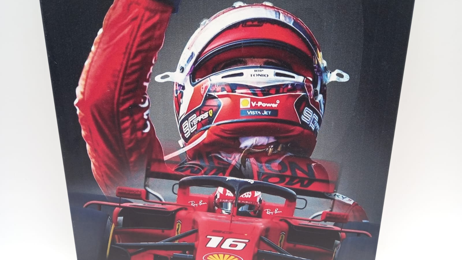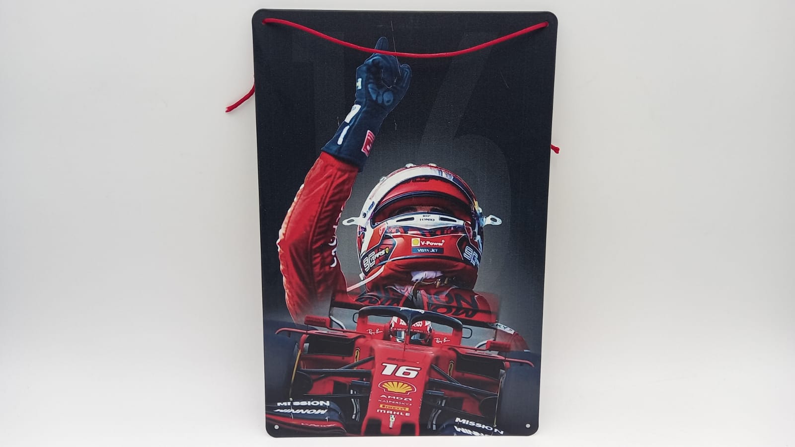 Targa in metallo raffigurante Charles Leclerc su Ferrari SF90 del 2019