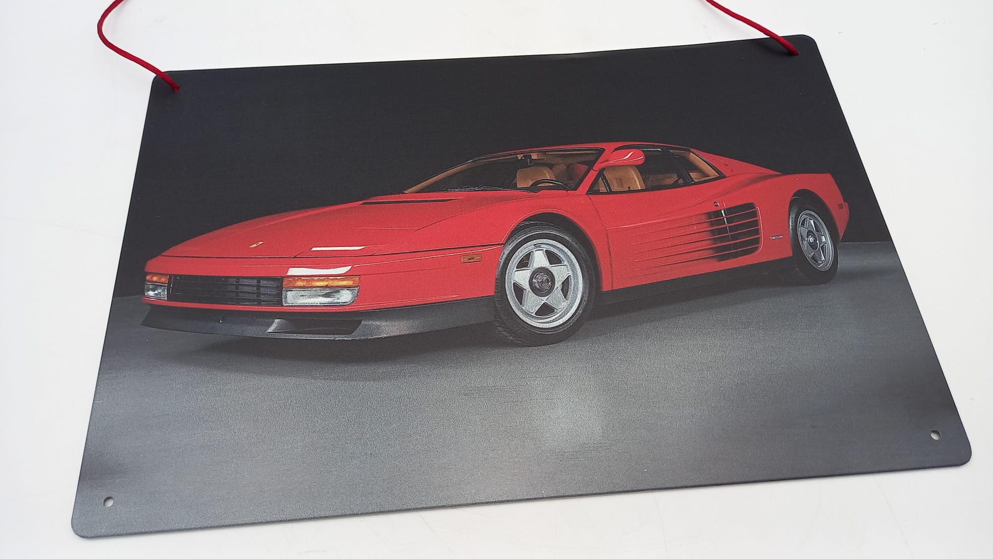 Targa in metallo riproducente la Ferrari Testarossa In perfette condizioni, misure 20 x 30 cm Già predisposta per essere appesa