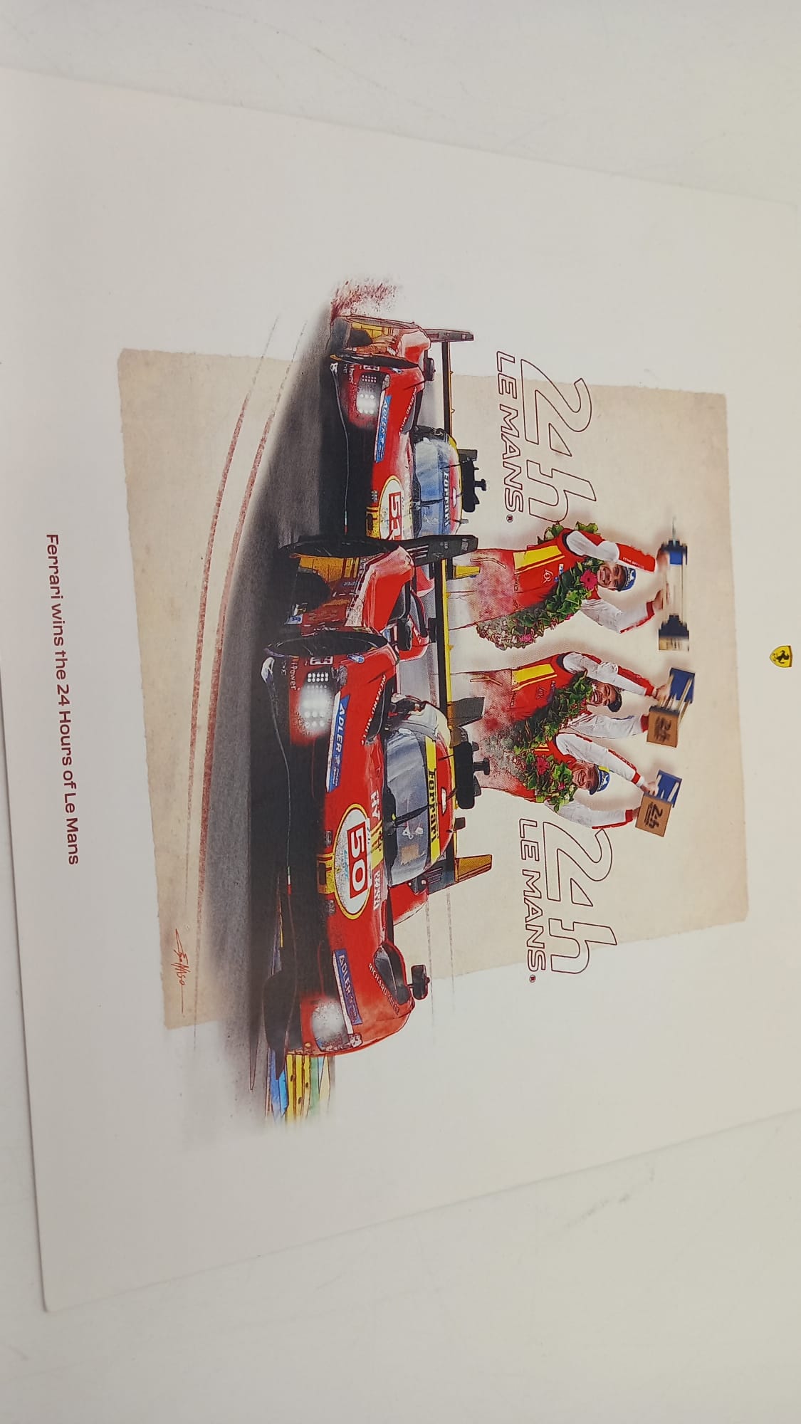 Cartolina celebrativa vittoria Ferrari 499 P alla 24h Le Mans del 2023 Misure 17,5 x15 cm In perfette condizioni