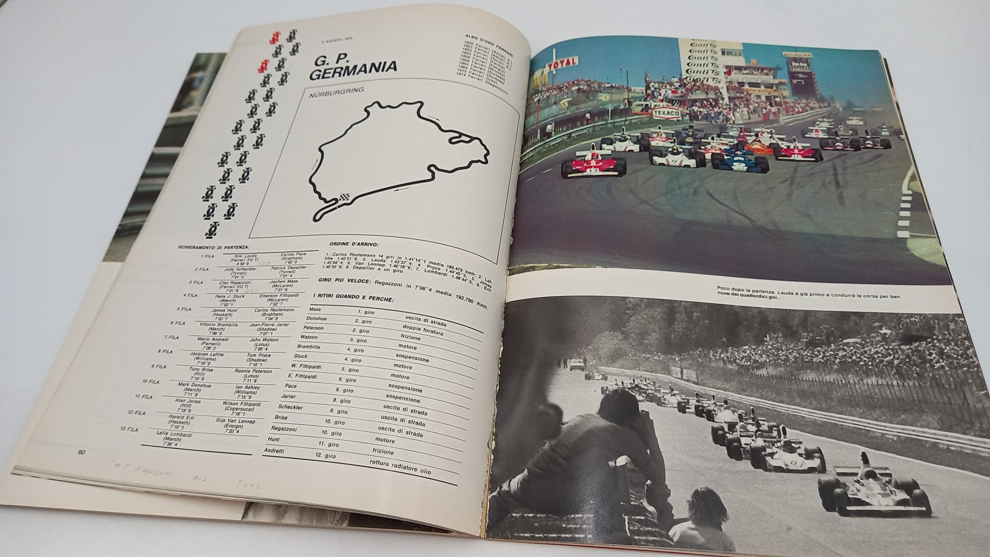 Rivista sul mondiale 1975 della Ferrari 96 pagine in italiano con illustrazioni a colori e bianco/nero In ottime condizioni