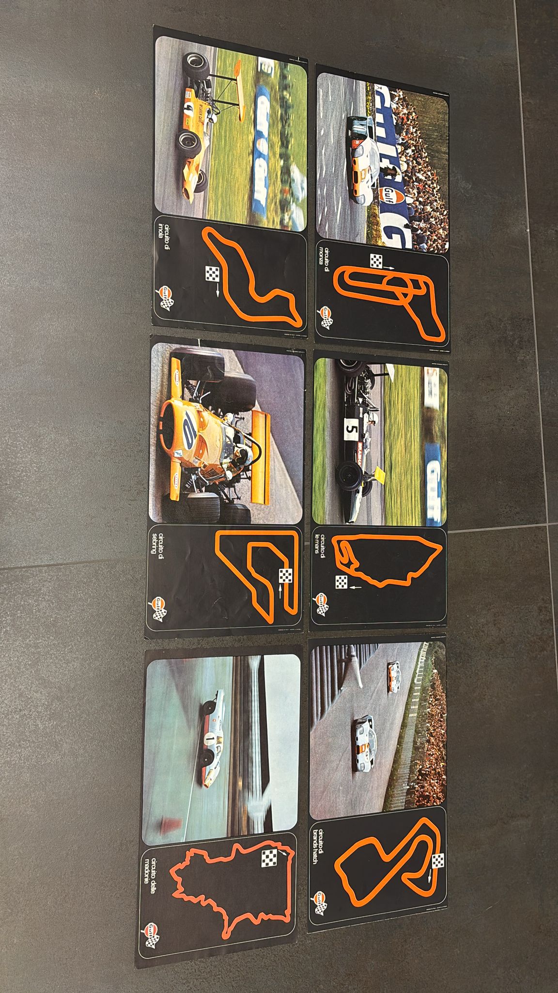 Lotto di 6 poster Formula 1 della scuderia Gulf con circuiti Dimensioni poster 38x21