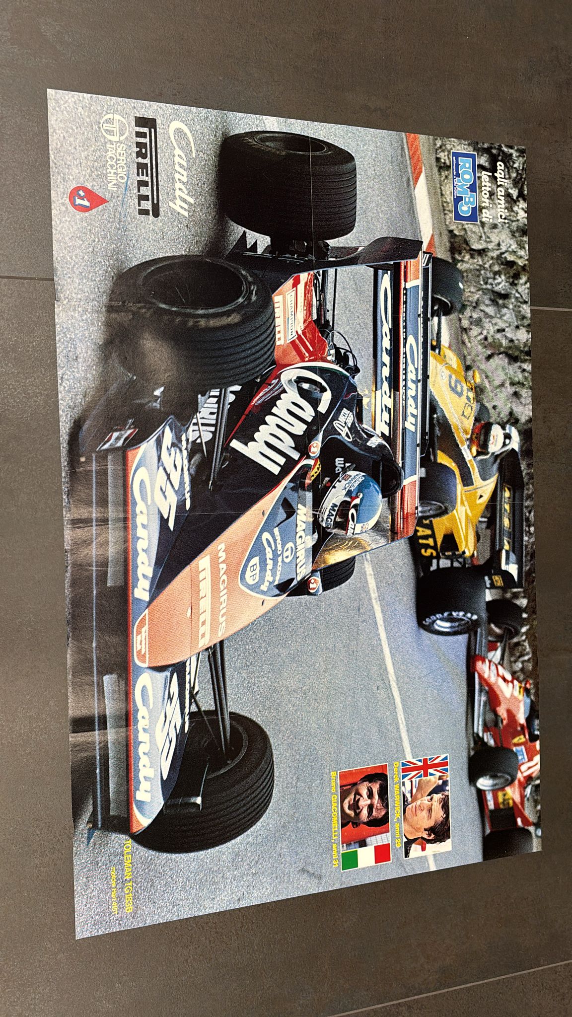 Poster ROMBO raffigurante la Toleman TG183B con foto di Dereck Warwick e Bruno Giacomelli Dimensioni poster 84,5x54