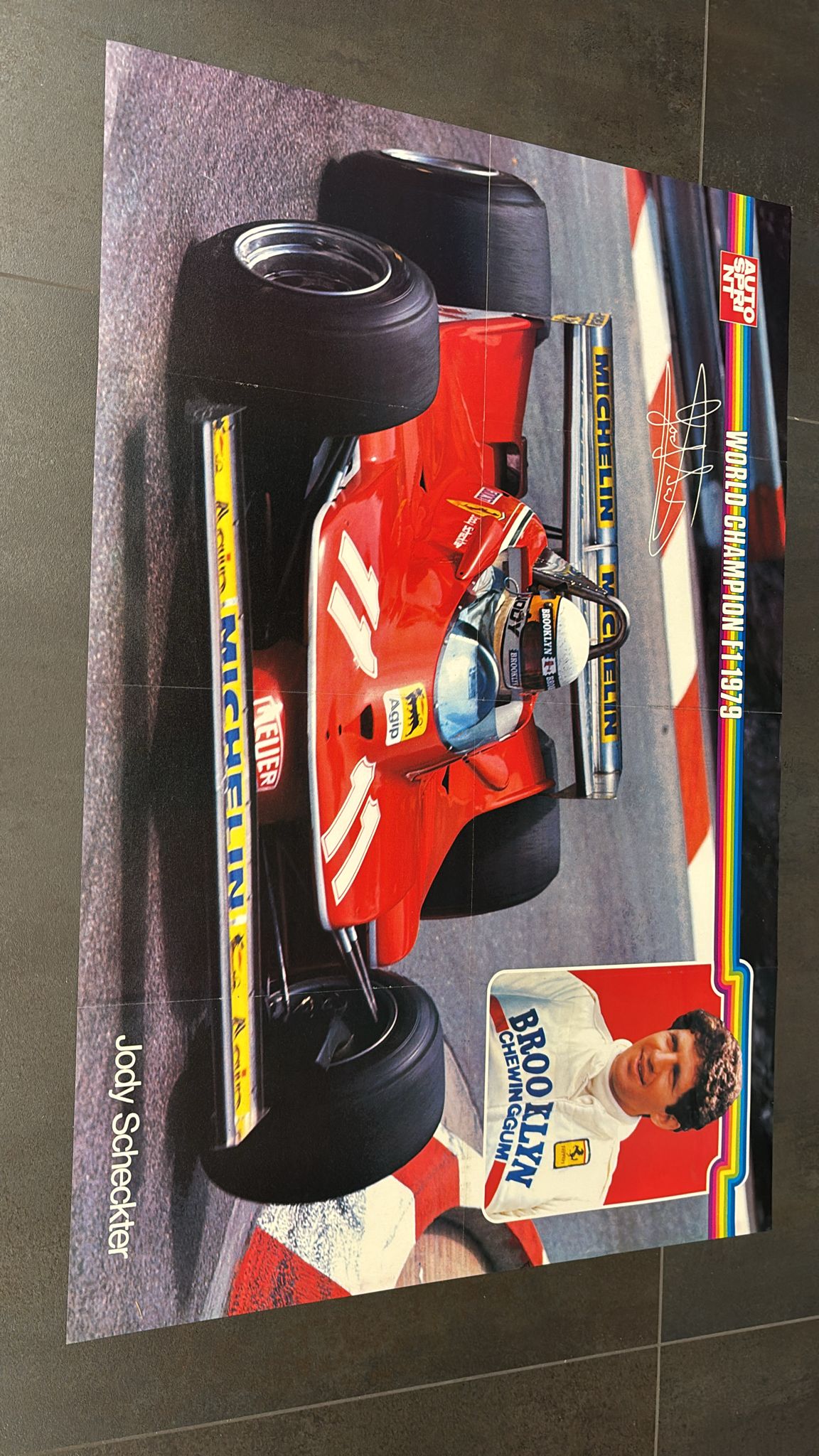 Poster raffigurante la Ferrari 312 T4 con alla guida Jody Scheckter, campione del mondo 1979 di F1 Dimensioni poster 91x60