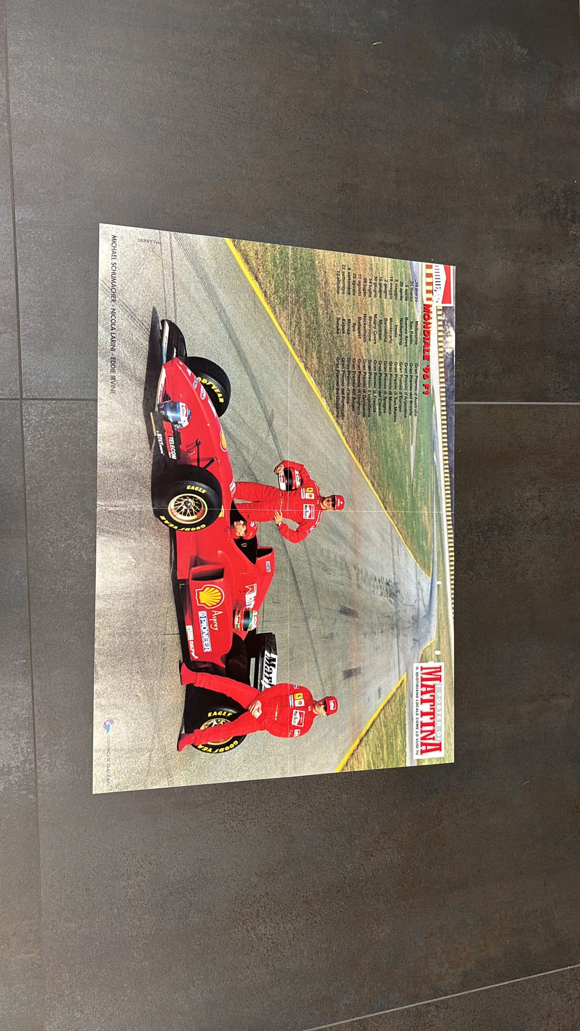 Poster raffigurante la Ferrari F310 assieme a Schumacher, Irvine e Larini Dimensioni poster 68x48