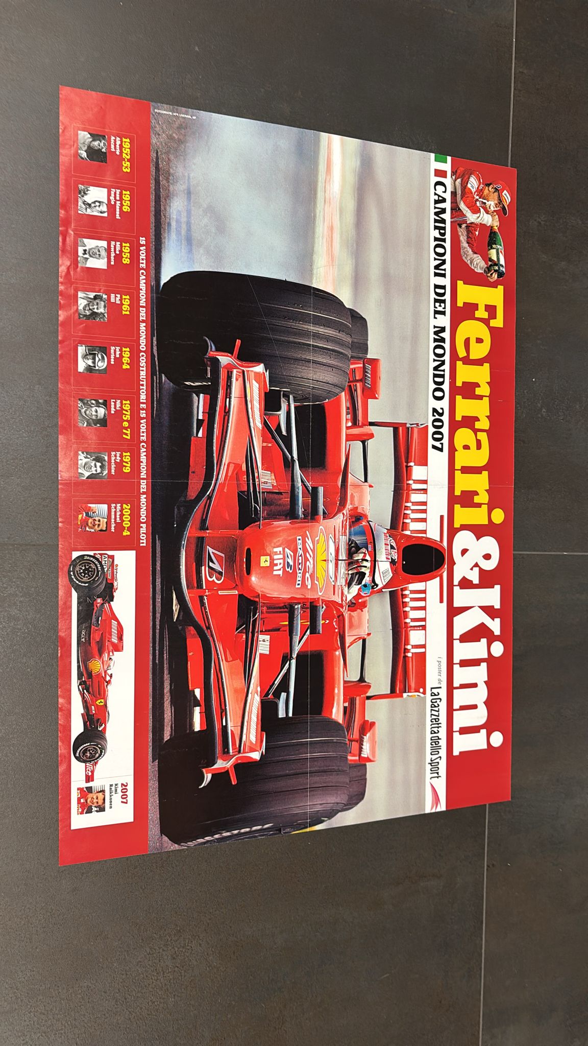 Poster celebrativo della vittoria di Kimi Raikkonen al Campionato mondiale 2007 con la Ferrari F2007 Dimensioni poster 84x49
