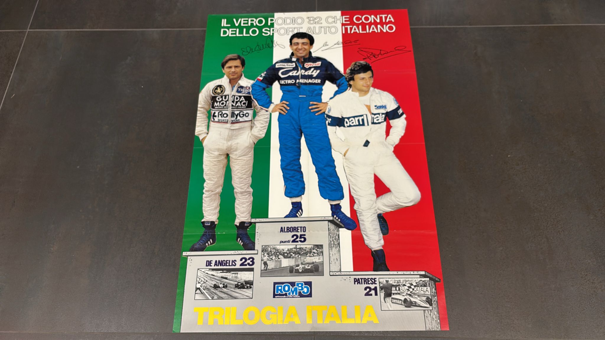 Poster commemorativo del podio tutto Italiano nel 1982 con Albareto, De Angelis, Patrese Dimensioni poster 85x55