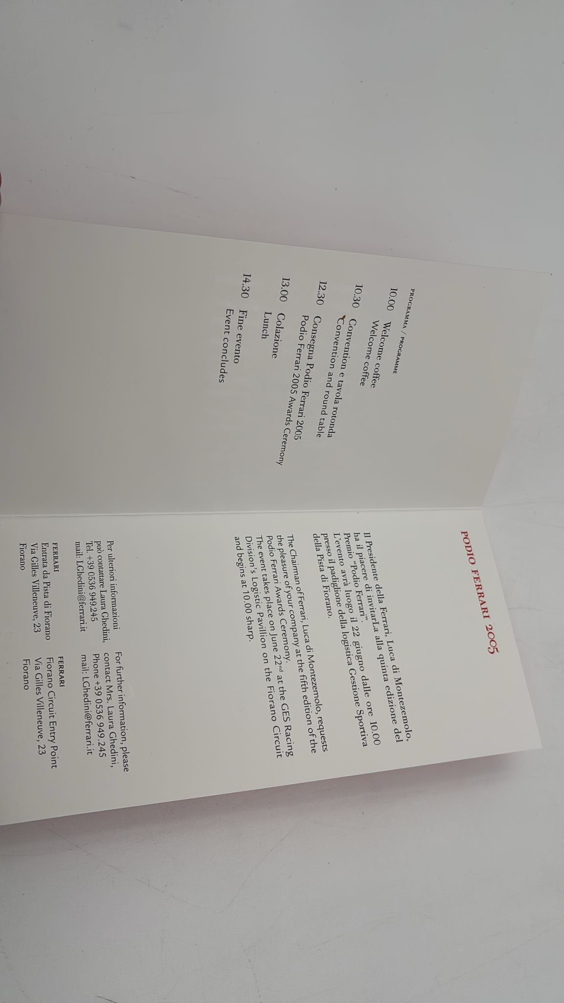 Invito ufficiale al Podio Ferrari svoltosi nel 2005