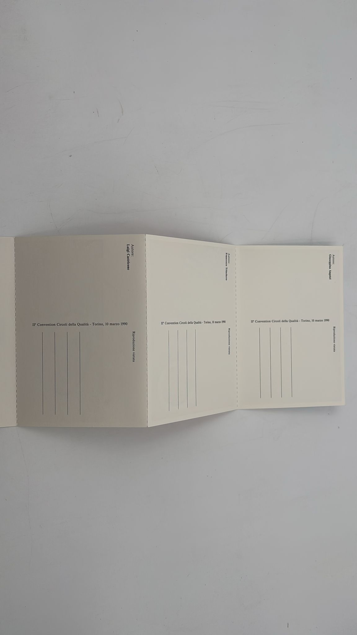 Inviti con illustrazioni sul retro per la Seconda Convention Circoli della Qualità, svoltasi il 10 Marzo 1990