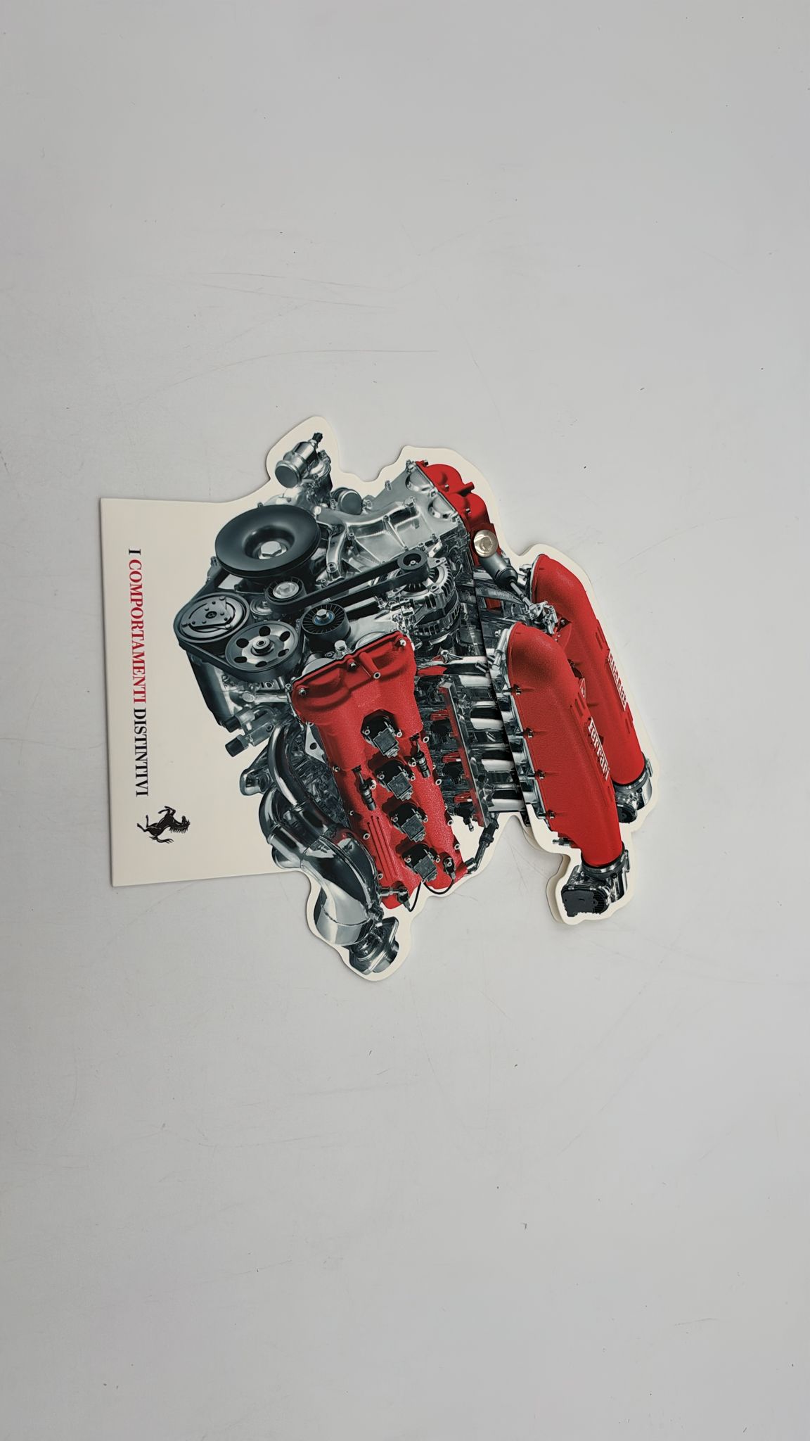 Diorama Ferrari F430 con testa del motore apribile e pistoni con dentro scritti i Comportamenti Distintivi Ferrari