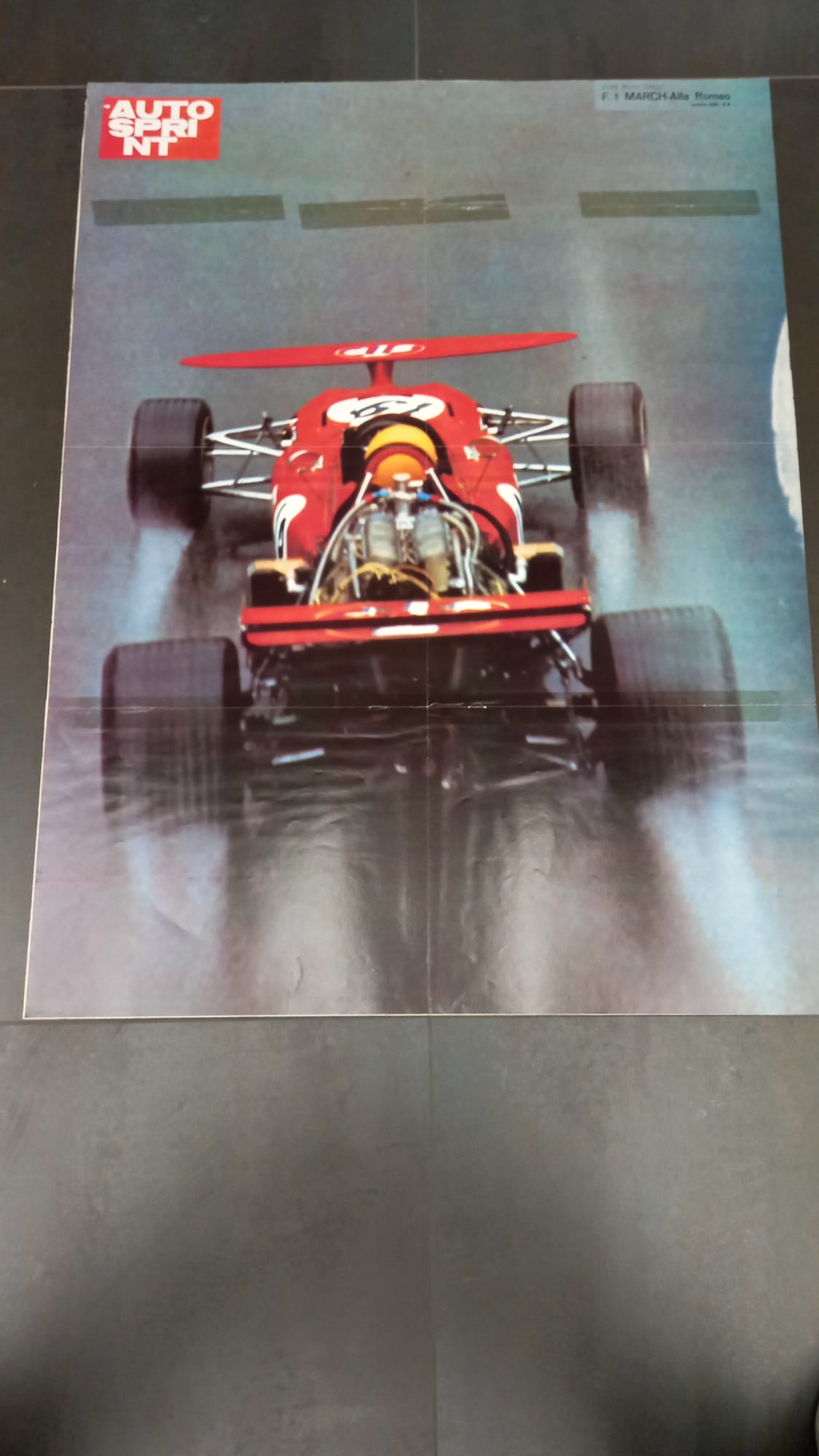 Poster autosprint che rappresenta Nanni Galli che pilota la MARCH-Alfa Romeo F1 Misure 60x80 Presenti rinforzi di scotch