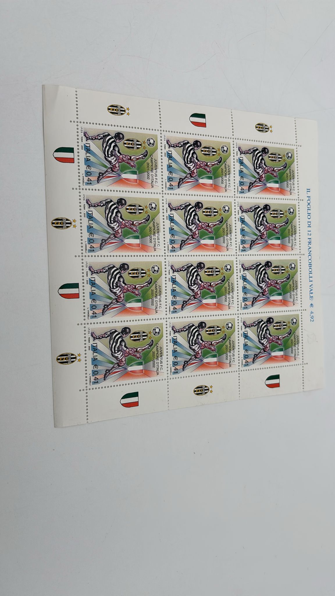 Foglio di 12 francobolli a tema Juventus, campione d'Italia 2001-2002