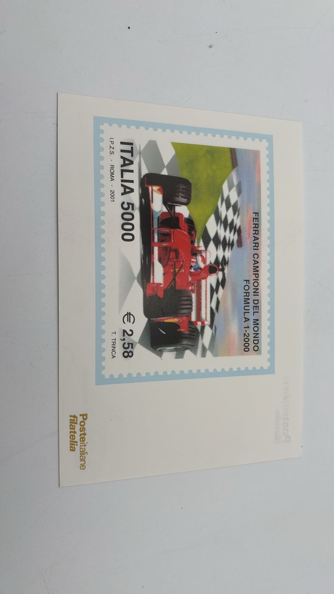 Cartolina a tema Ferrari, celebrativa della vittoria della scuderia ai campionati del mondo di Formula 1
