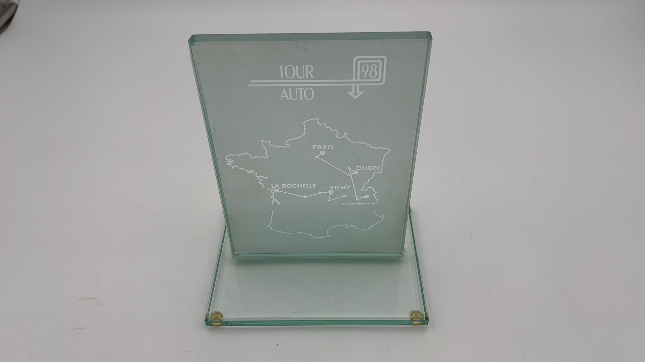 Statuetta di vetro commemorativa del Tour Auto tenutosi nel 1998.