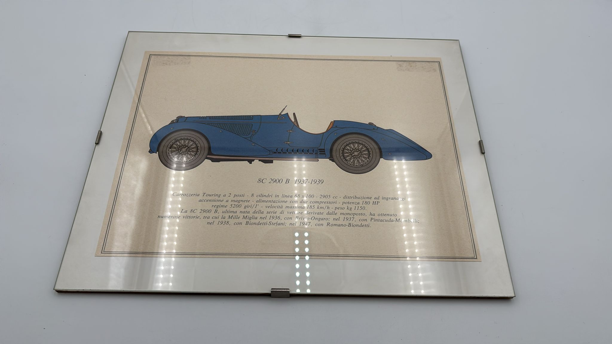Quadro raffigurante l'Alfa Romeo 8C 2900 B e una sua descrizione Dimensione cornice 35x28 Ottime condizioni