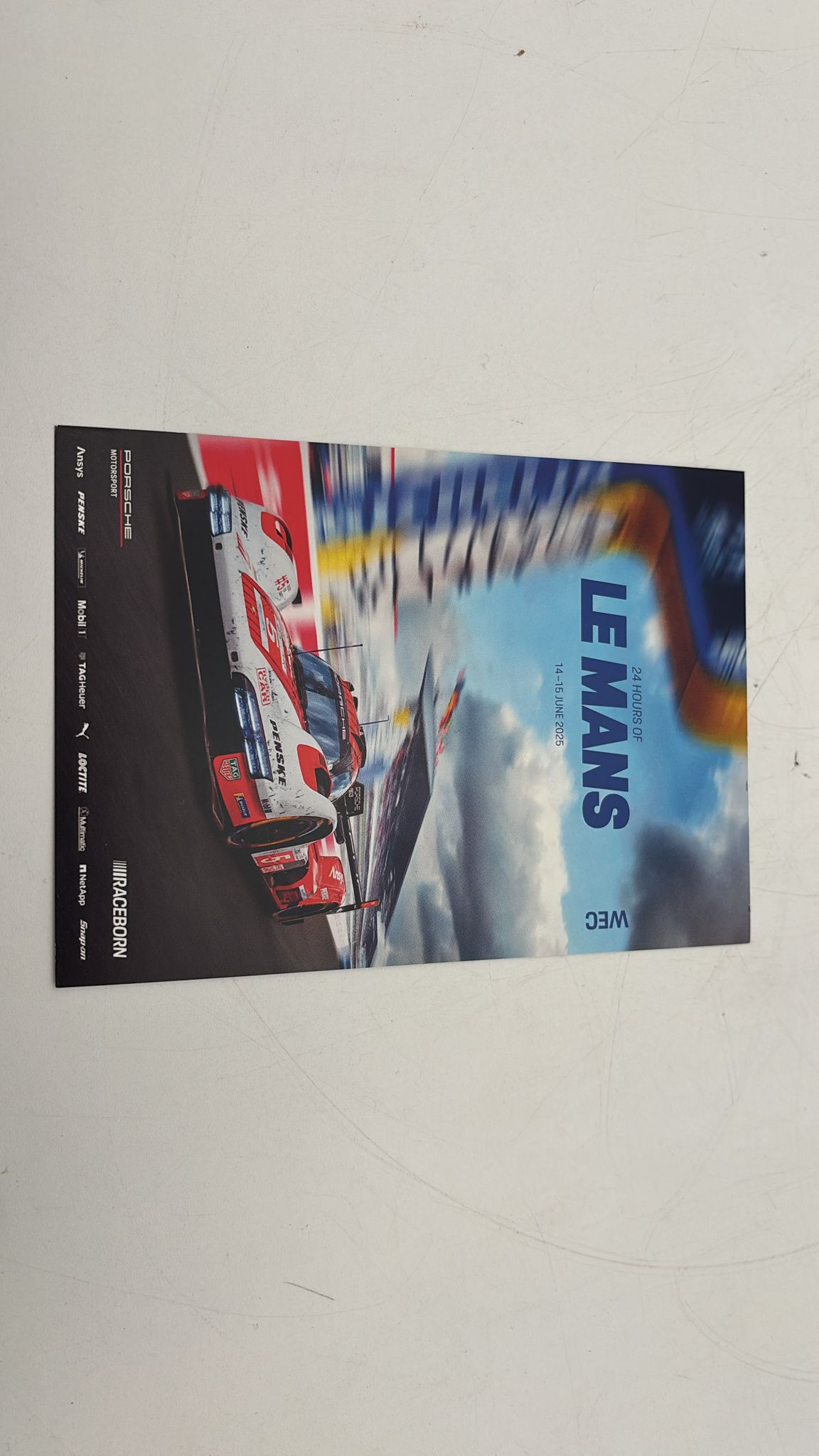 Cartolina con immagine della Porsche 963 per la 24h di Le Mans 2025. Dimensioni 15x10,5 cm.