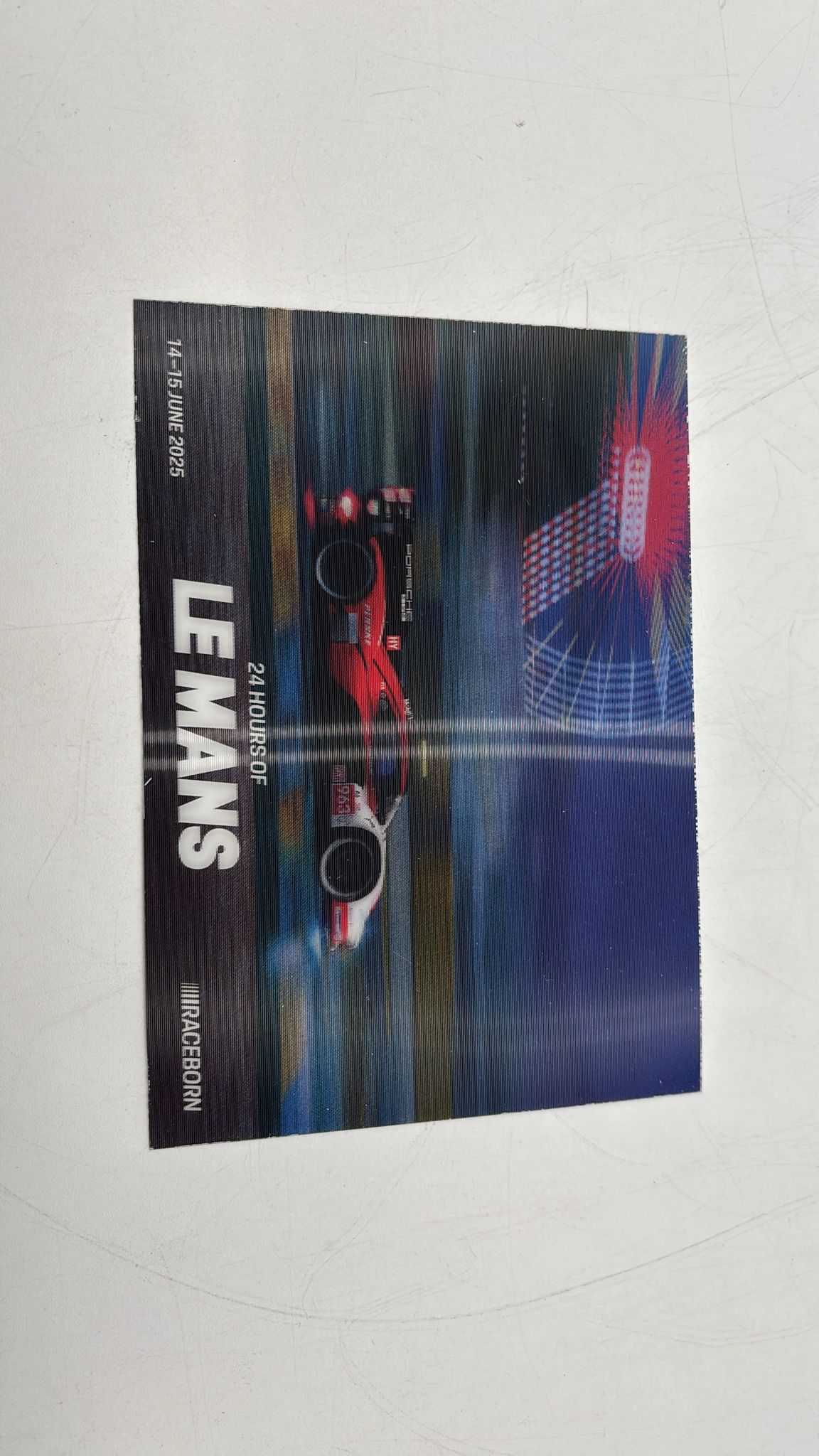 Immagine a stampa lenticolare raffigurante la Porsche 963 durante la 24h di Le Mans 2025. Dimensioni 15x10,5 cm.