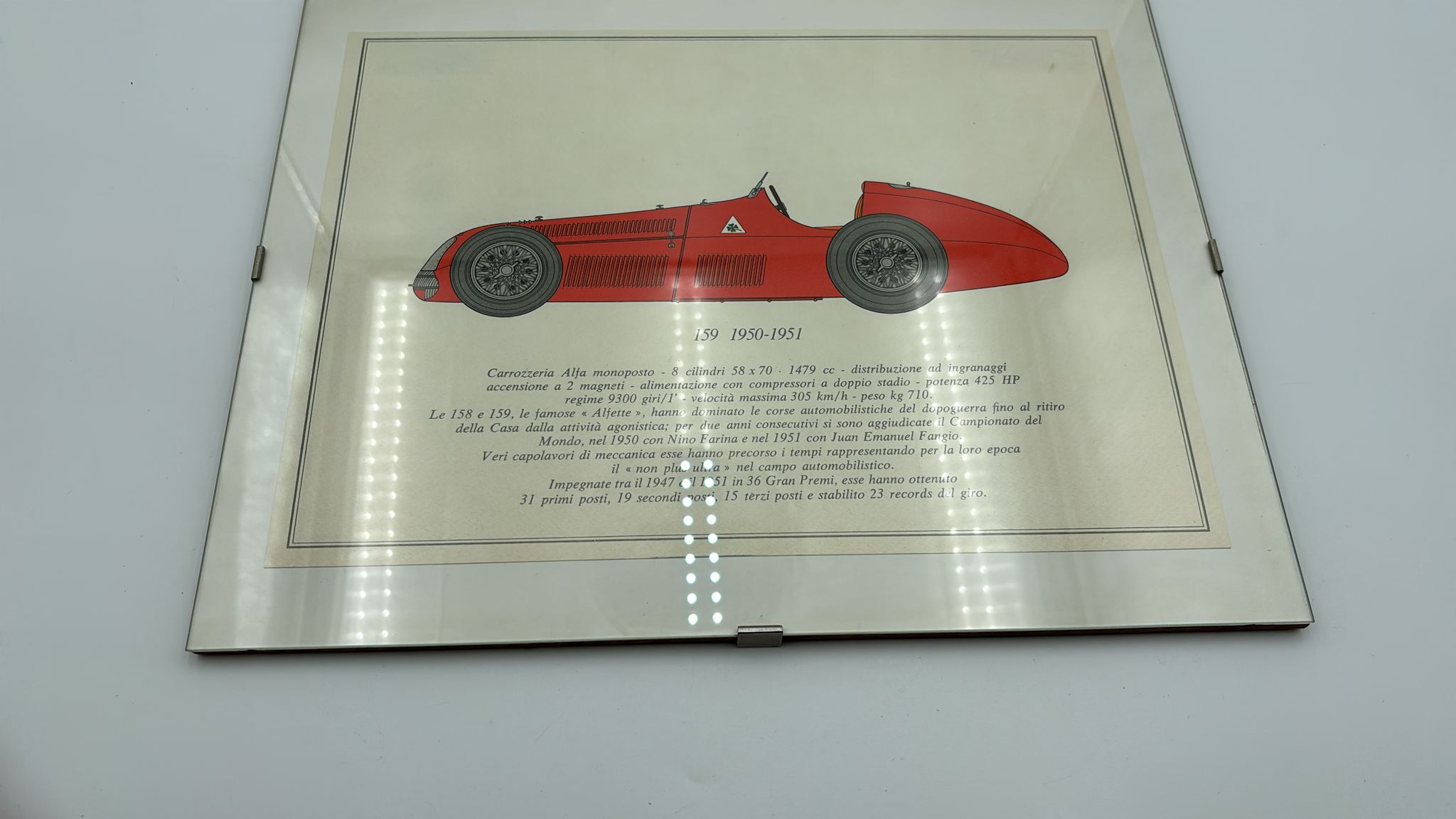 Quadro raffigurante l'Alfa Romeo 159 e una sua descrizione Dimensione cornice 35x28 Ottime condizioni