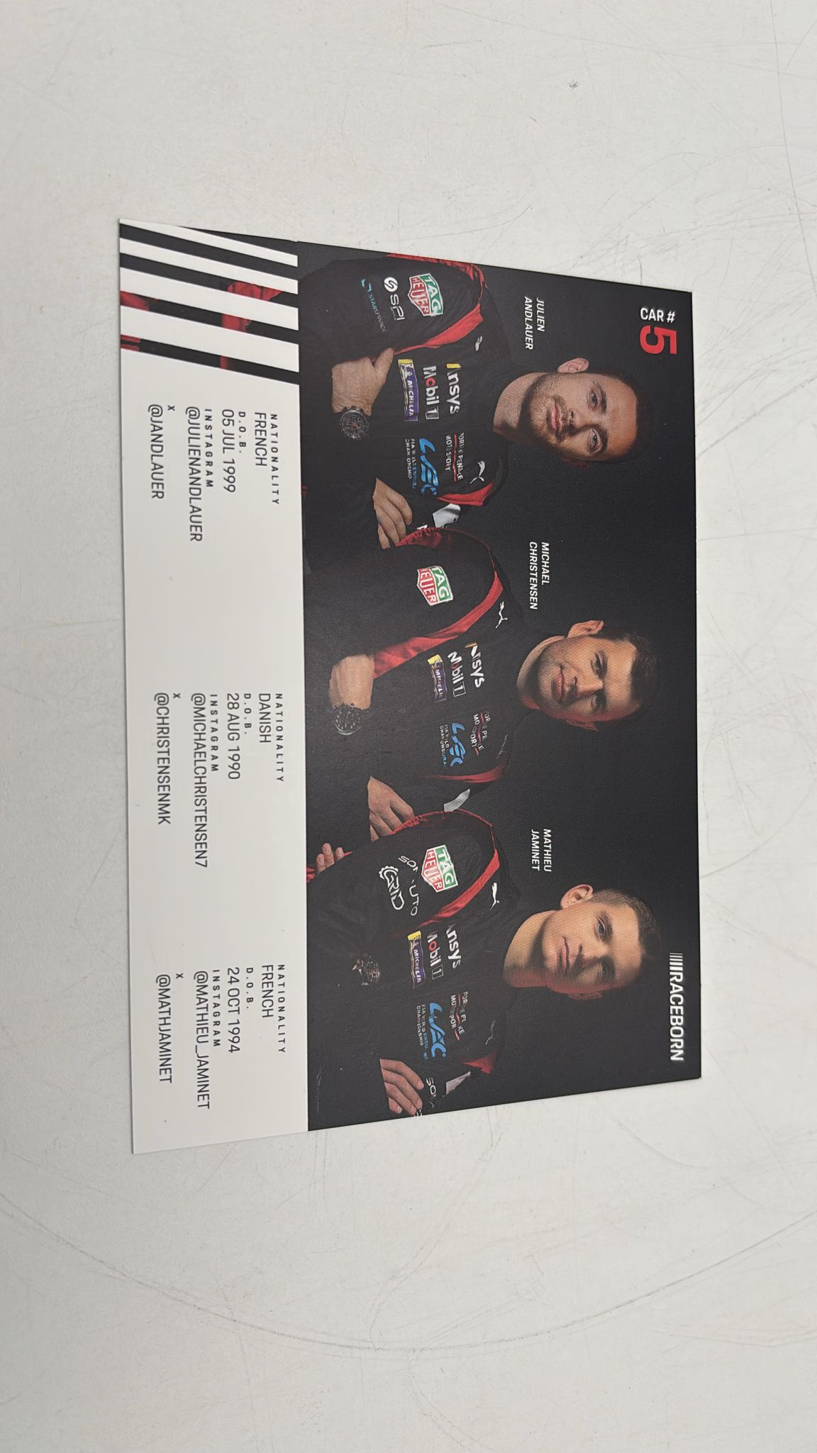 Volantino di presentazione della Porsche 963 n.5 con piloti. Dimensioni 10,5x15 cm.