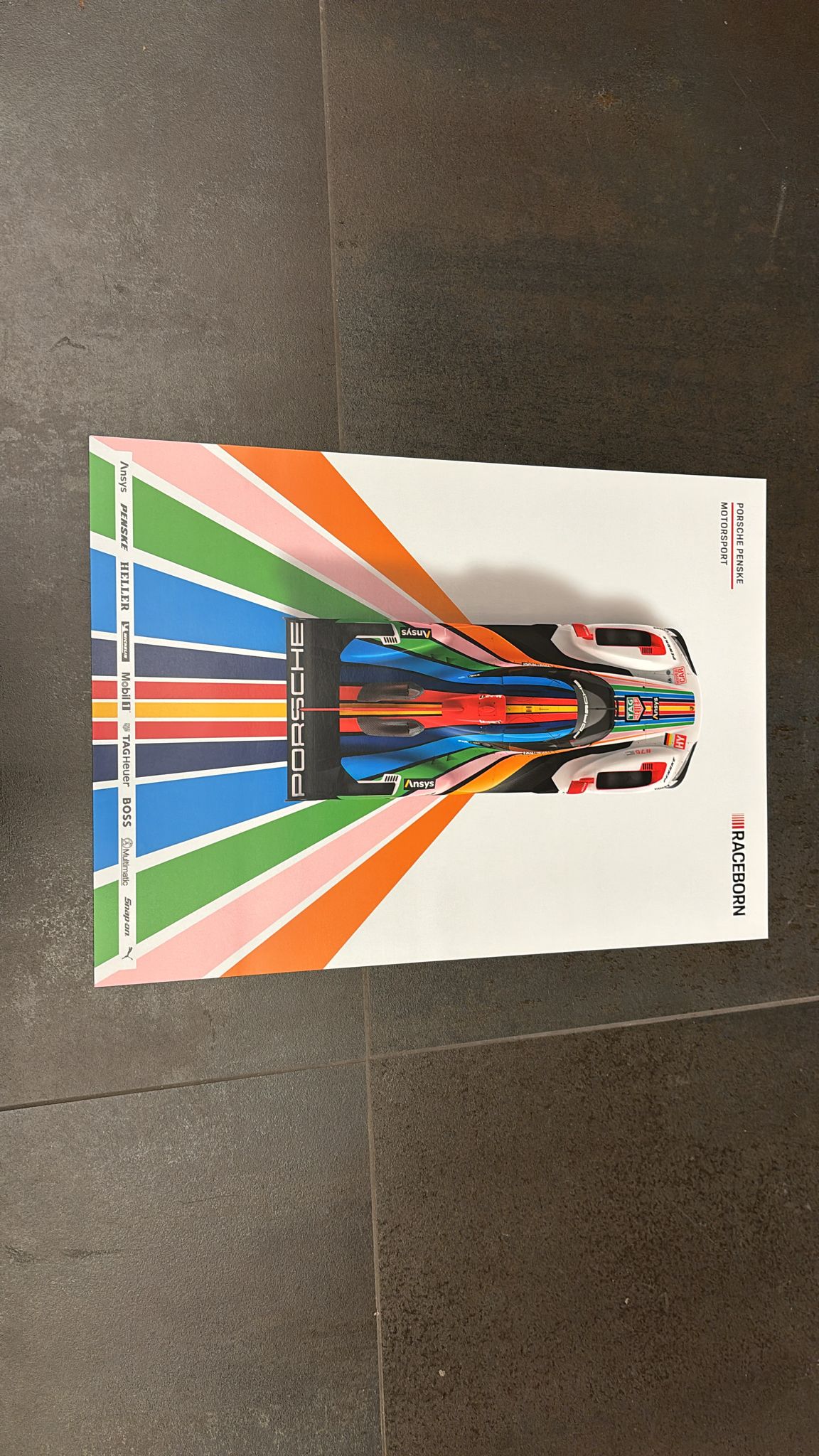 Poster ufficiale Raceborn raffigurante la Porsche 963 Le Mans. Dimensioni 29,5x42 cm.