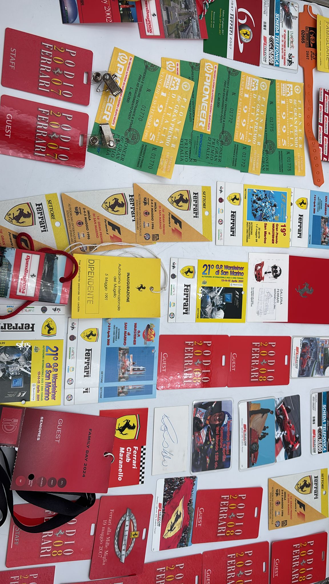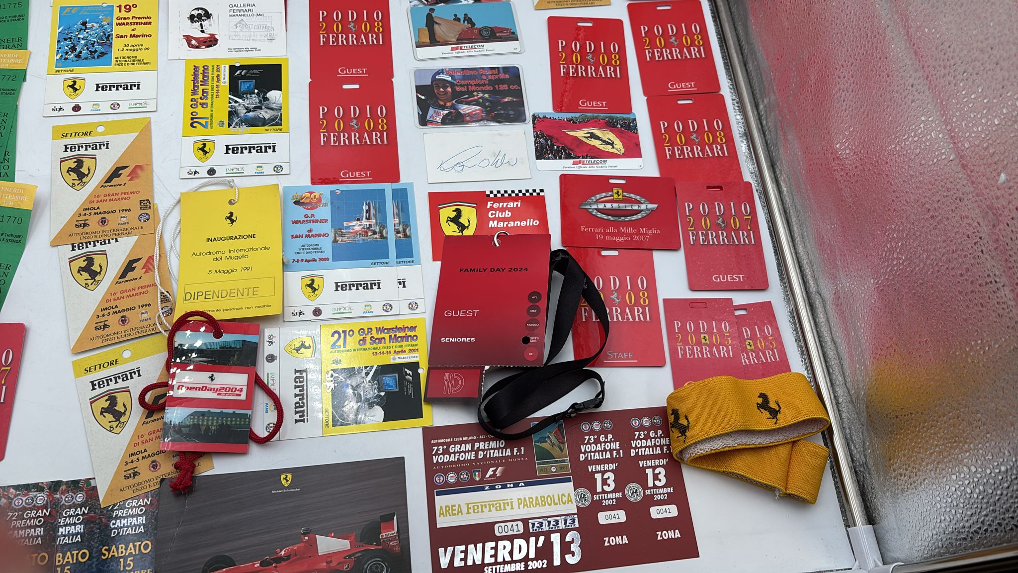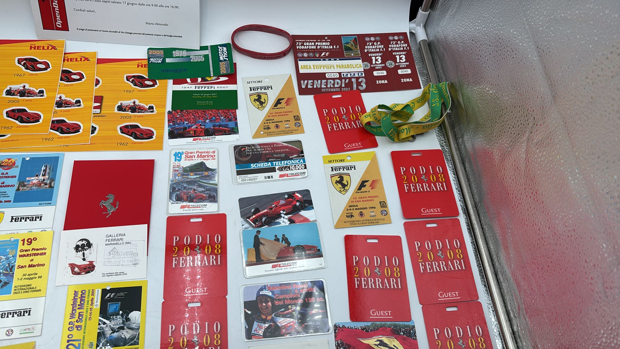 Lotto di Memorabilia Ferrari con all'interno Pass per eventi, schede telefoniche, cartoline, ecc... Ottime condizioni.