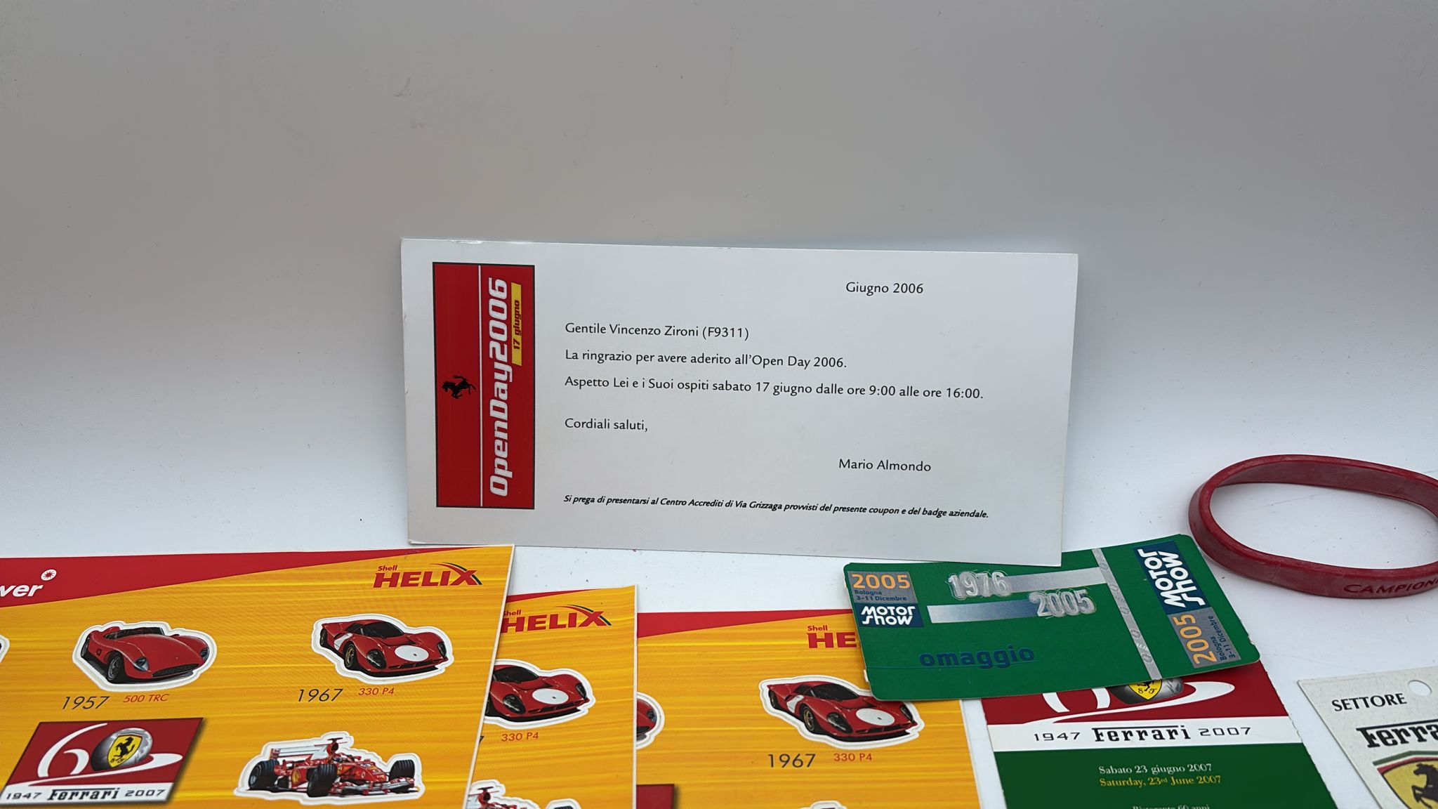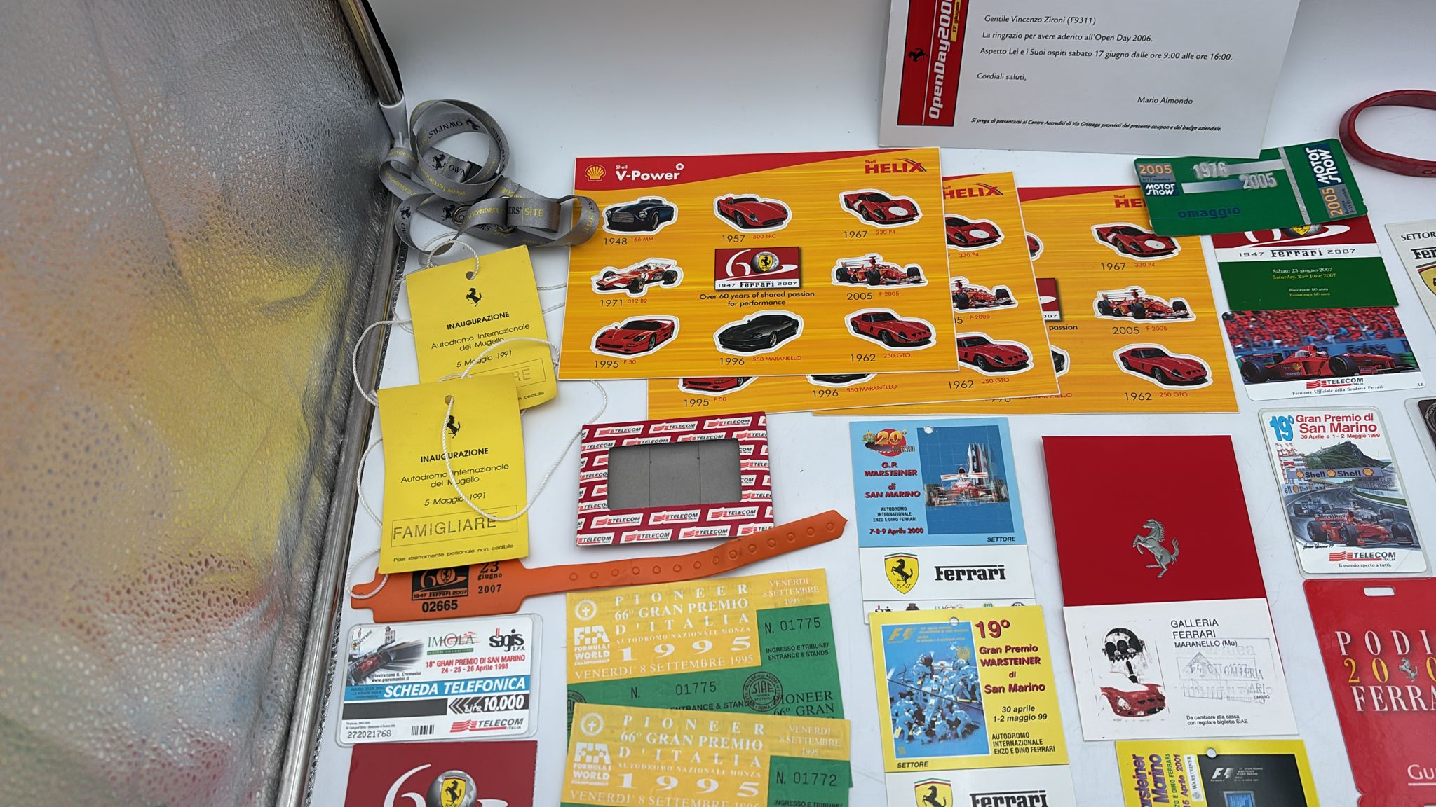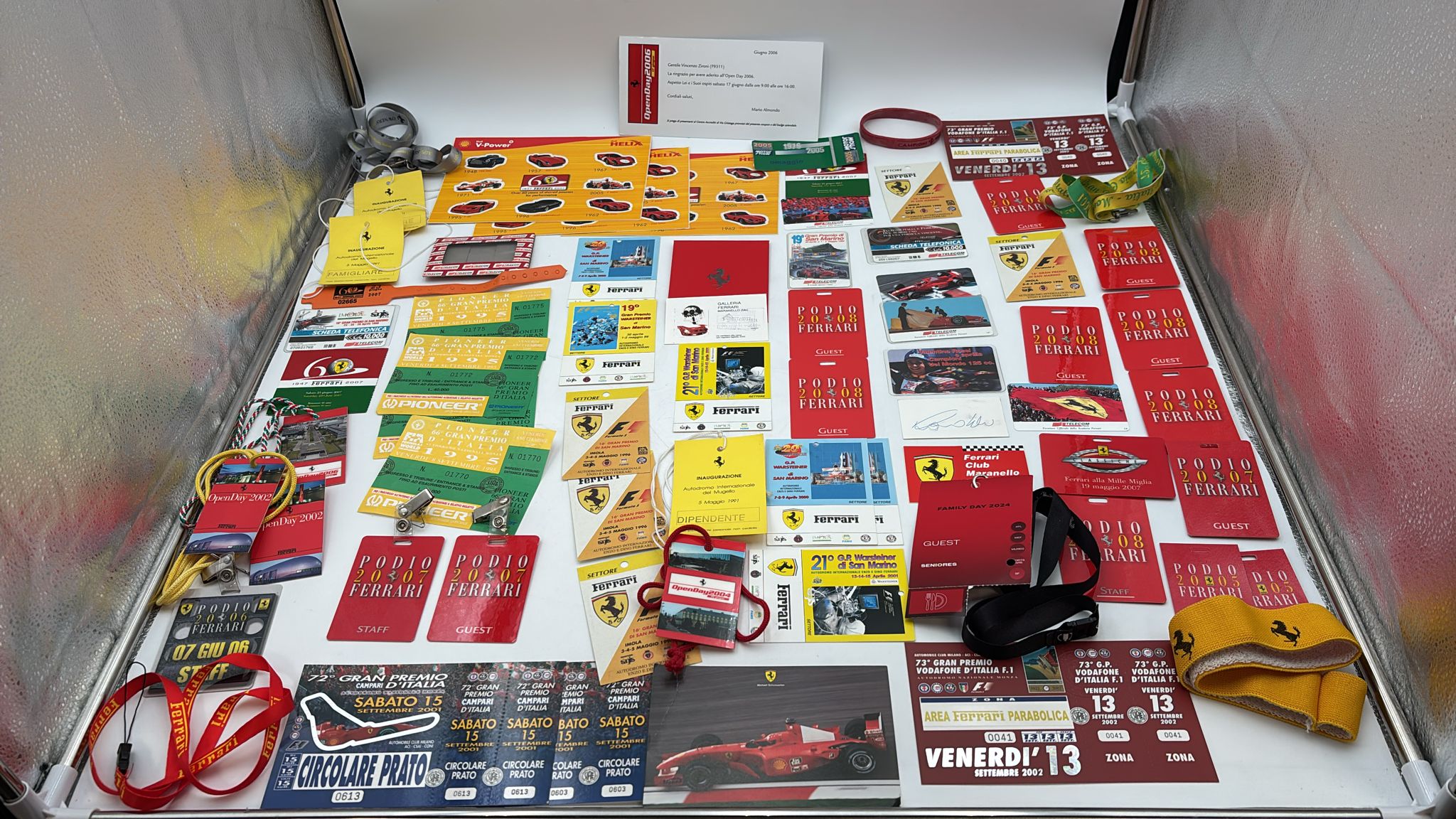 Lotto di Memorabilia Ferrari con all'interno Pass per eventi, schede telefoniche, cartoline, ecc... Ottime condizioni.