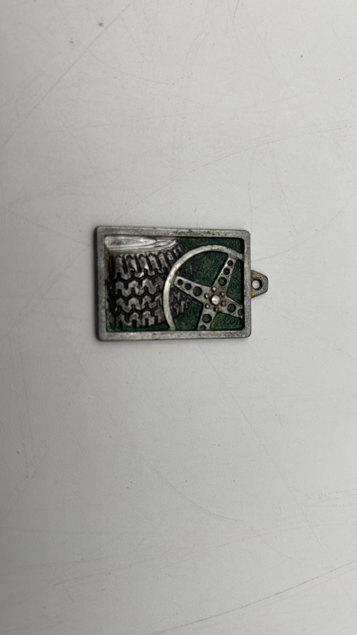 Portachiavi raffigurante una ruota e un volante. Buone condizioni.