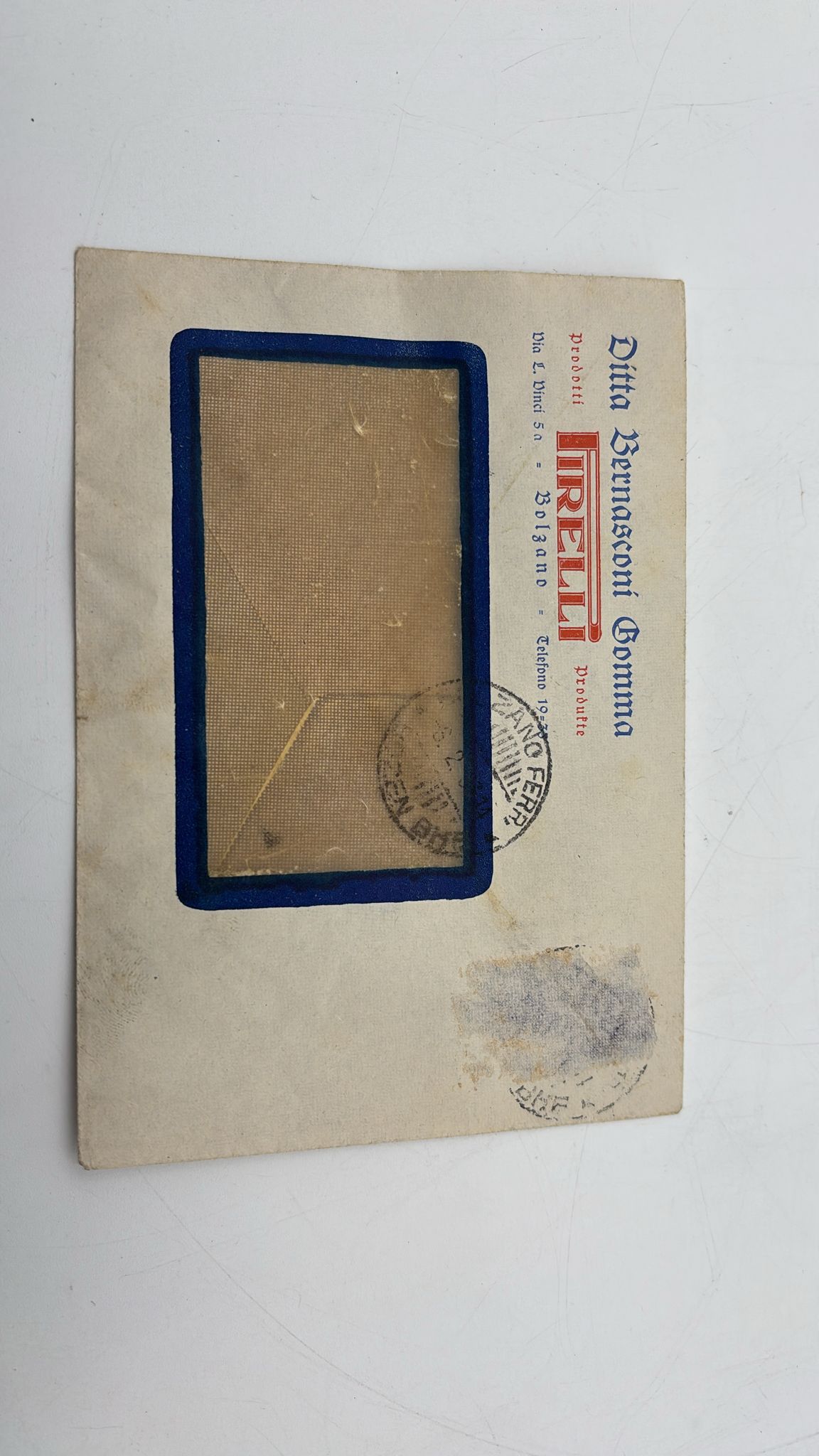 Busta per lettere d'epoca della Pirelli. Molto usurata dal tempo.