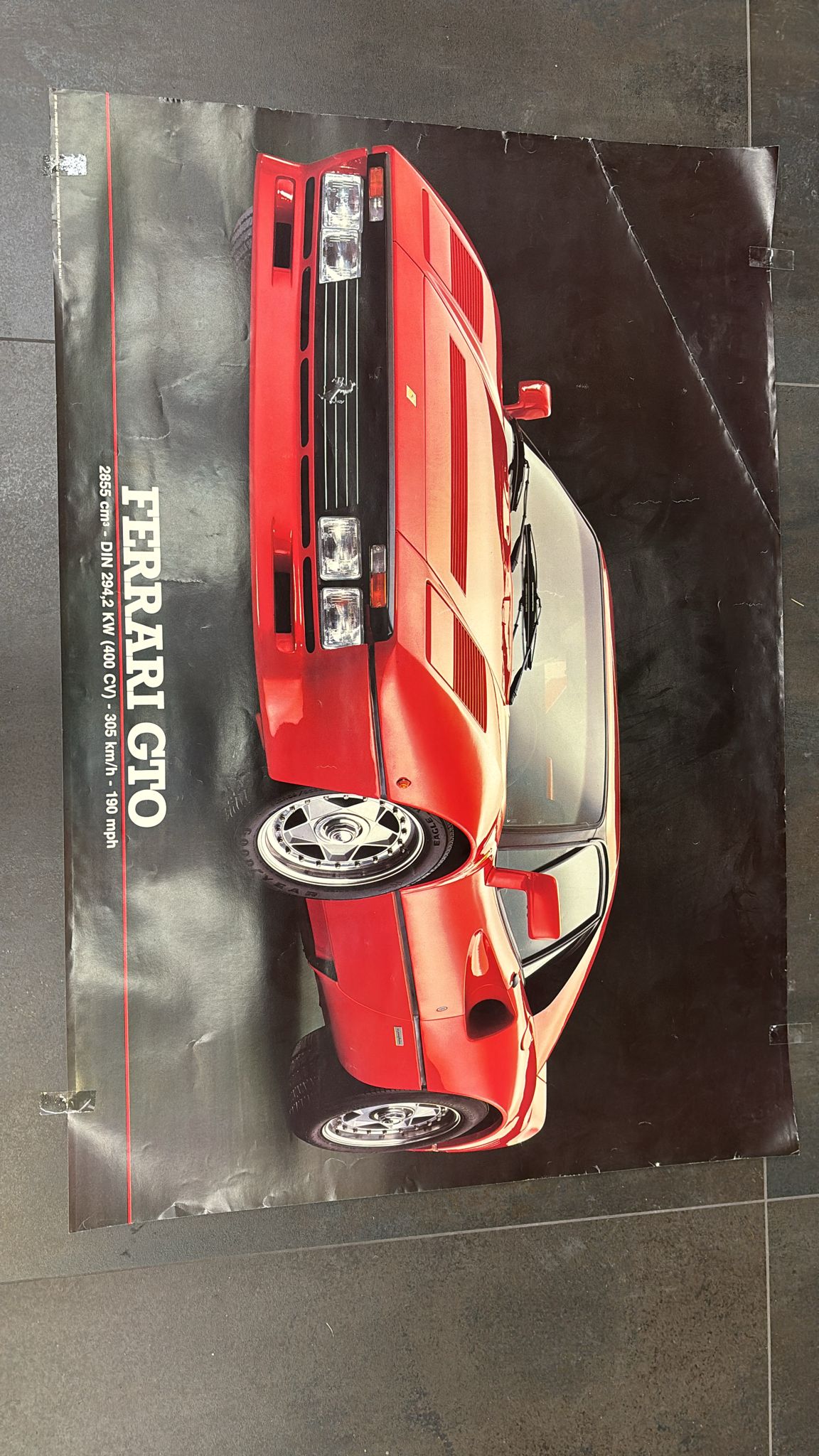 Poster raffigurante la Ferrari 288 GTO. Dimensioni 69x98 cm. Segni di usura.