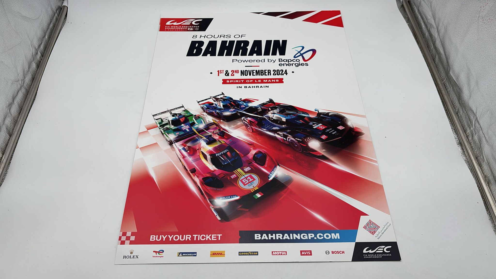 Poster promozionale della 8 ore tenutasi in Bahrain nel 2024. Dimensioni: 60x42 cm. Ottime condizioni.