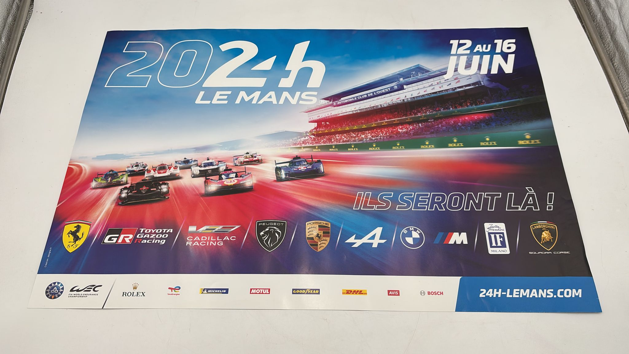 Poster promozionale della 24 ore di Le Mans del 2024. Dimensioni: 36,5x60 cm. Ottime condizioni.