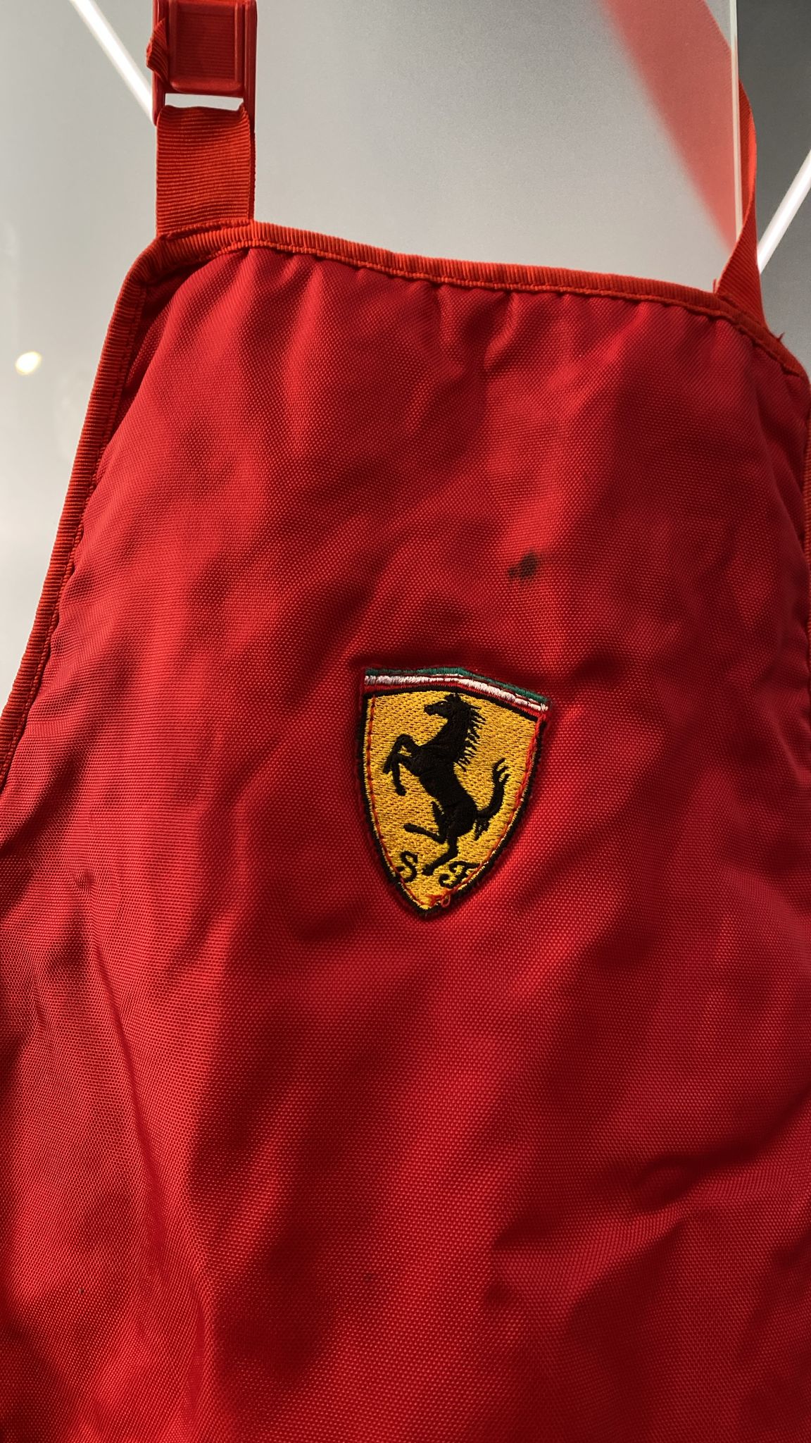 Grembiule da lavoro Ferrari Oggetto usato Presenta qualche macchia Necessita di lavaggio Altezza 65 cm