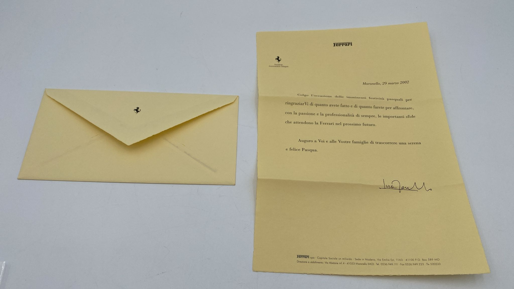 Lettera di auguri Ferrari del 2002 per il capo motorista Vincenzo Zironi Pezzo originale in ottime condizioni
