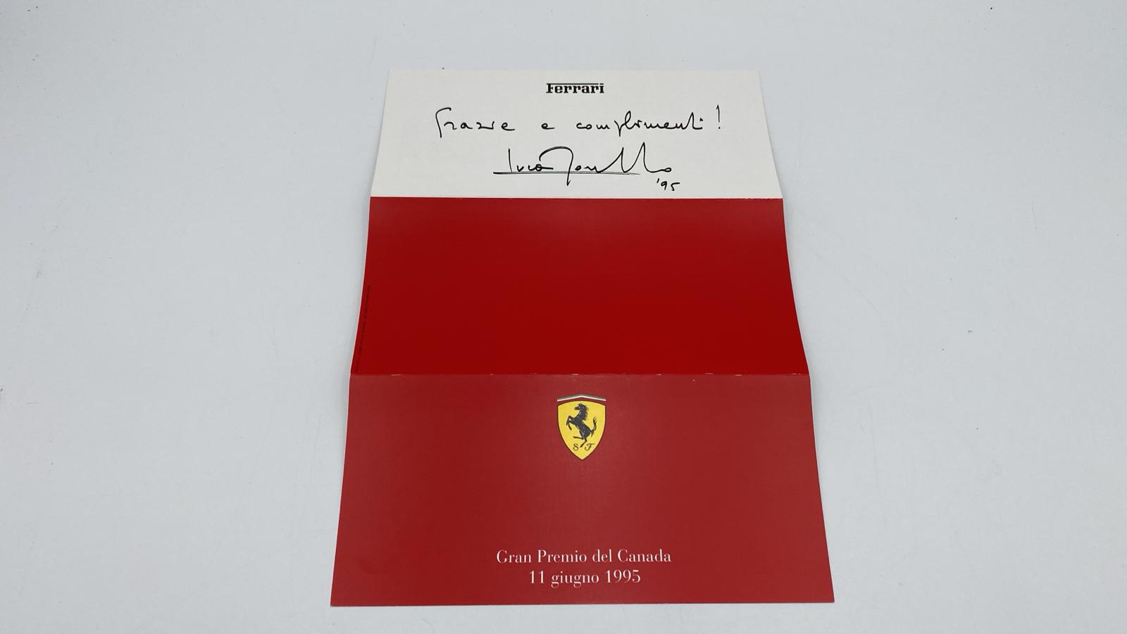 Brochure Ferrari GP del Canada del 1995 con dedica e firma di Montezemolo per il capo motorista Vincenzo Zironi