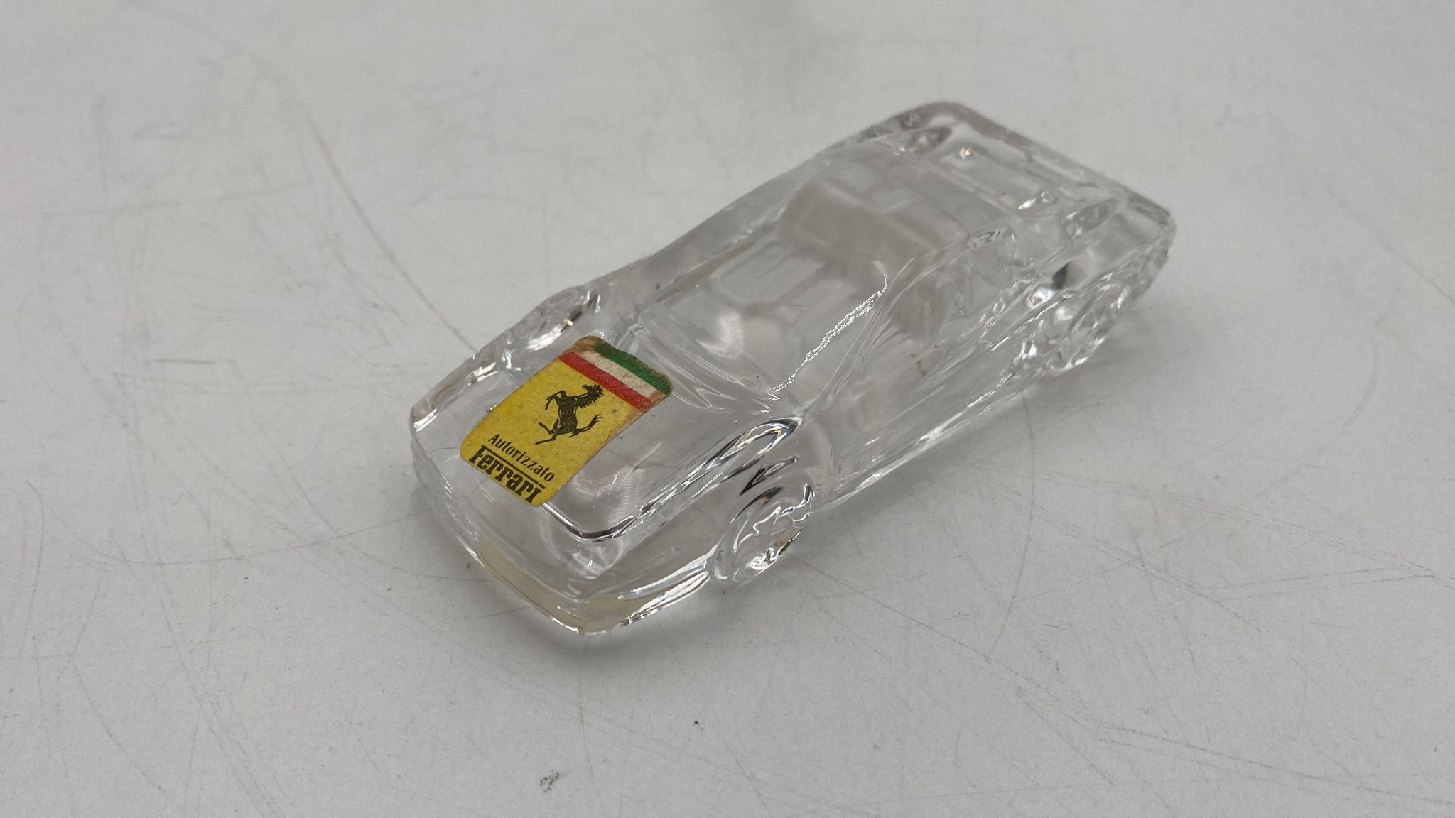 Fermacarte in vetro raffigurante una Ferrari Testarossa Ottime condizioni Misure: 10x4,5x2,5