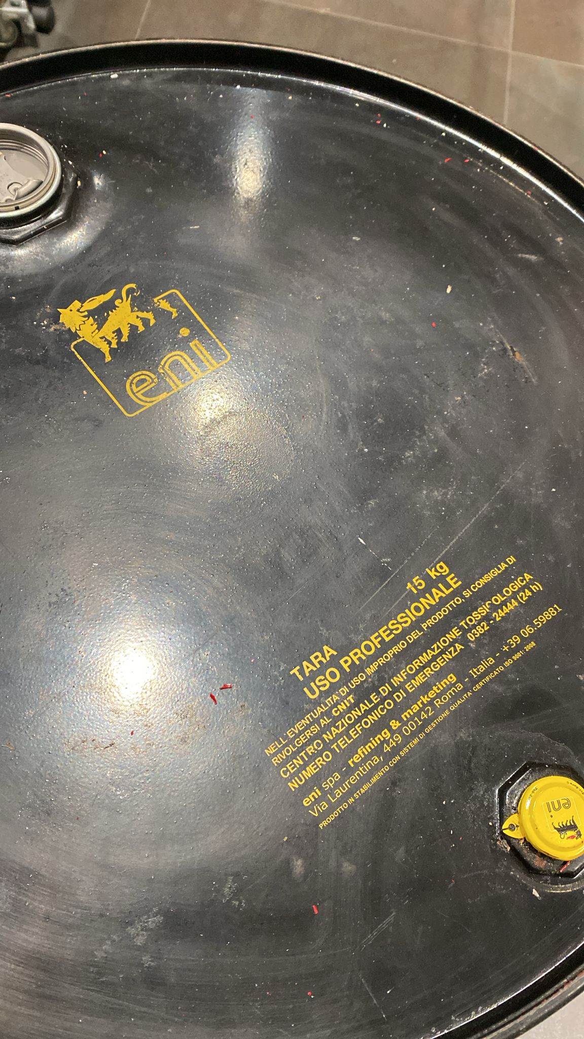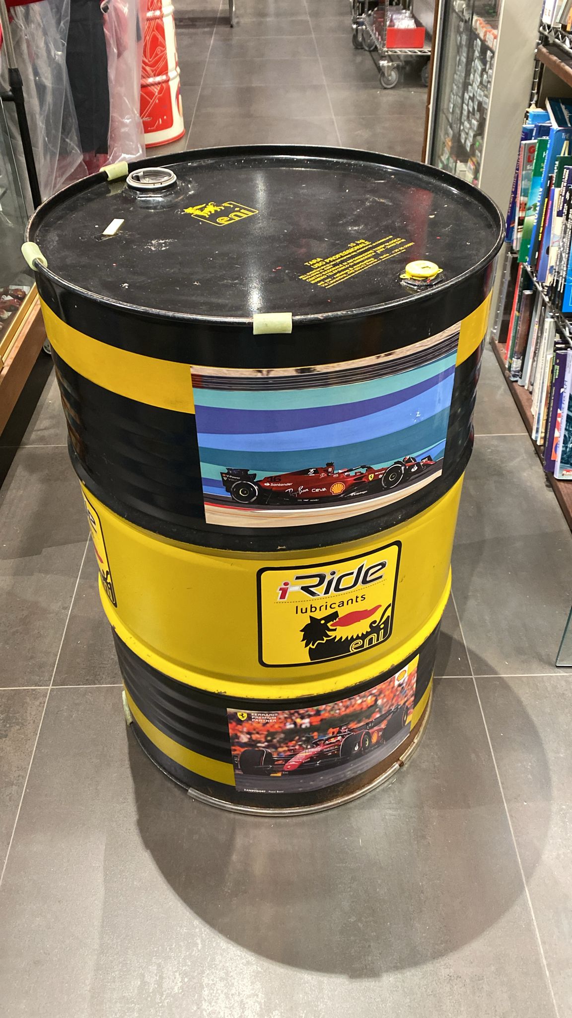 Barile vuoto Lubrificante Eni con foto Ferrari F1 Misure: altezza 88 cm e diametro 58 cm