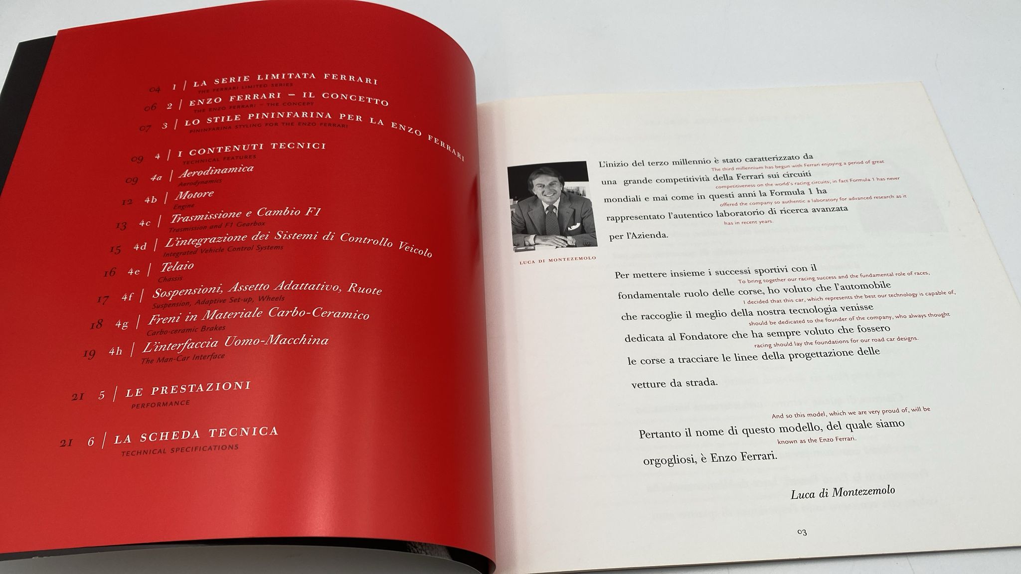 Brochure di presentazione Ferrari Enzo Pagine a colori e testi in italiano/inglese