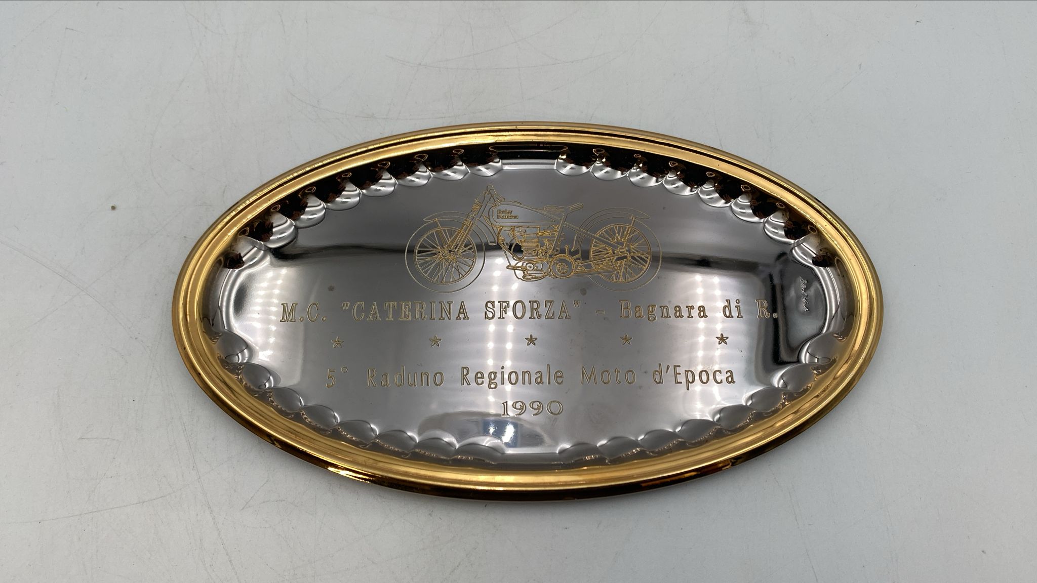 Targa celebrativa del quinto raduno regionale moto d'epoca del 1990 Ottime condizioni Misure: 21 x 12 cm