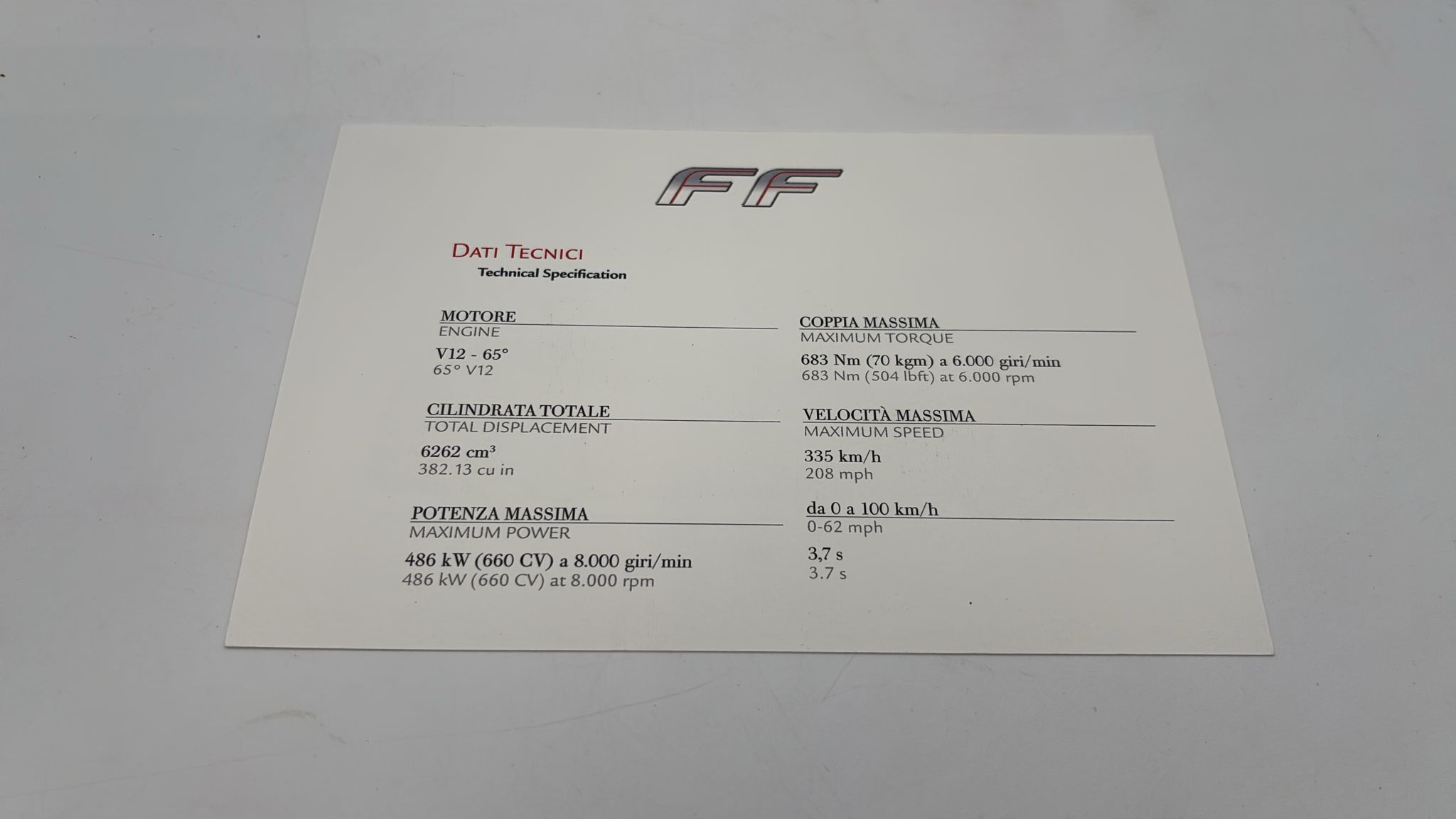 Cartolina ufficiale Ferrari FF Misure: 19.5 x 13 cm
